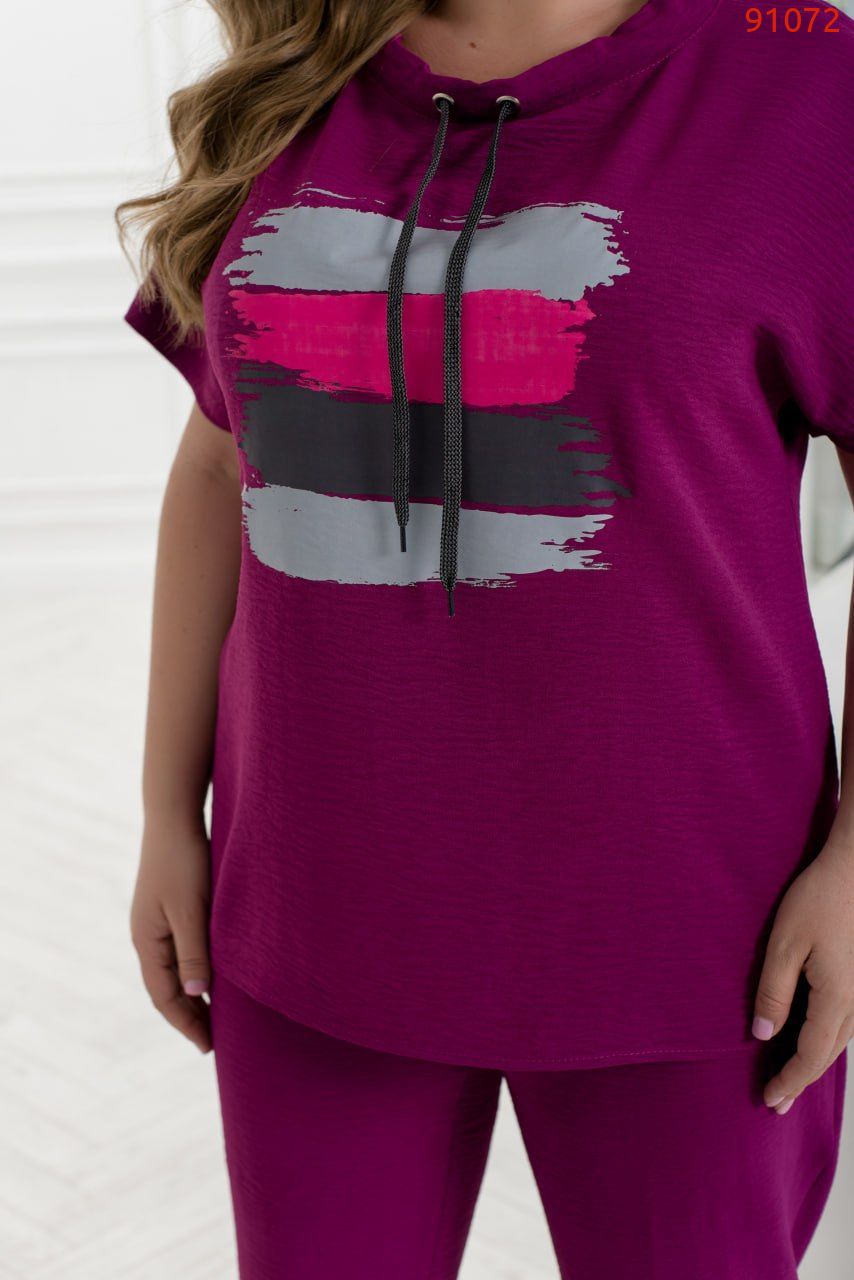 Цей костюм створений для комфорту в кожному русі. Невагома футболка з рухомим декоративним шнурком у напівкруглому вирізі горловини і цільнокроєний короткий рукав дозволяють насолоджуватися носінням вироба.. На основі розміщено яскраву декоративну наліпку. Штани прямого крою з гумкою в талії мають бічні кишені для дрібниць.