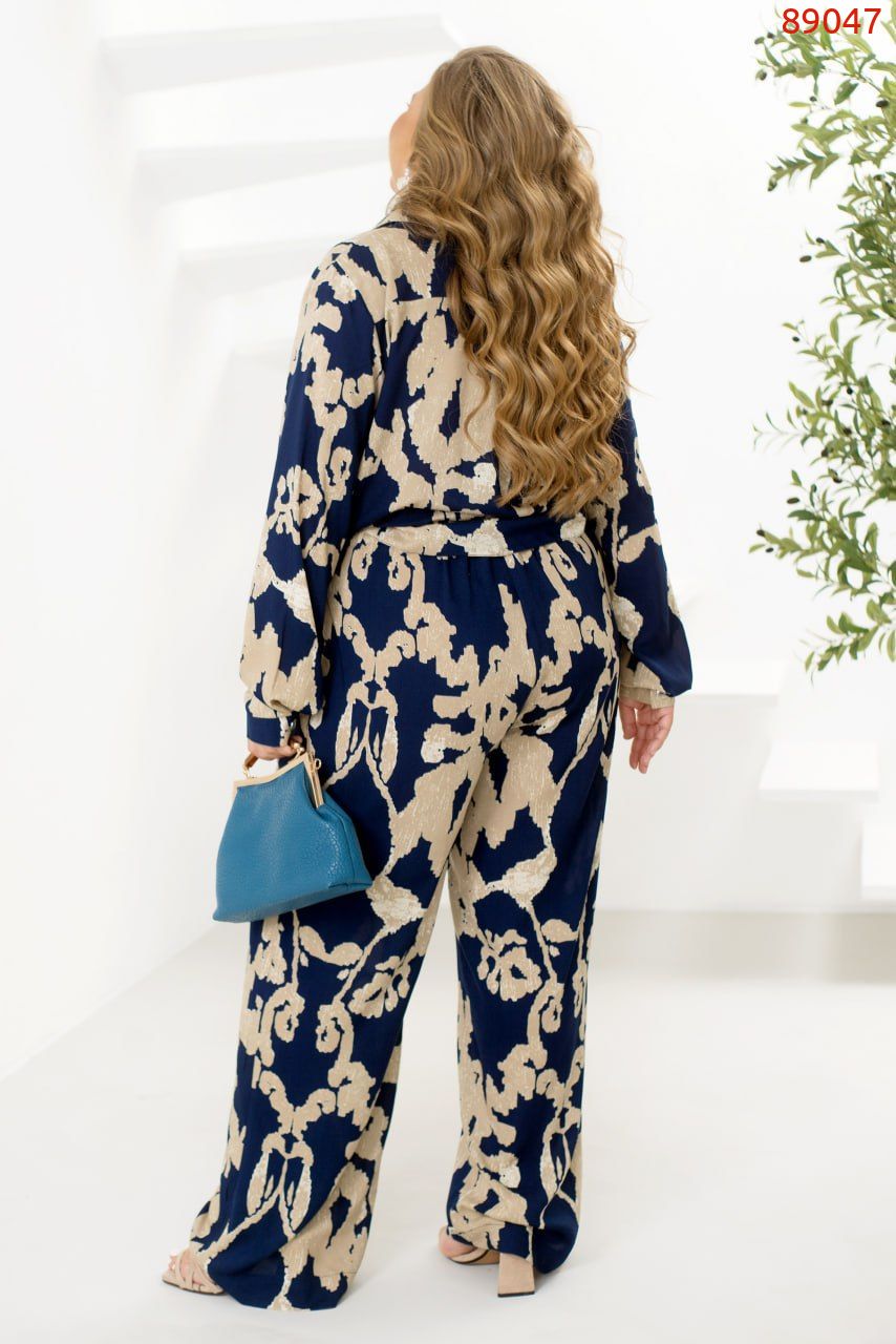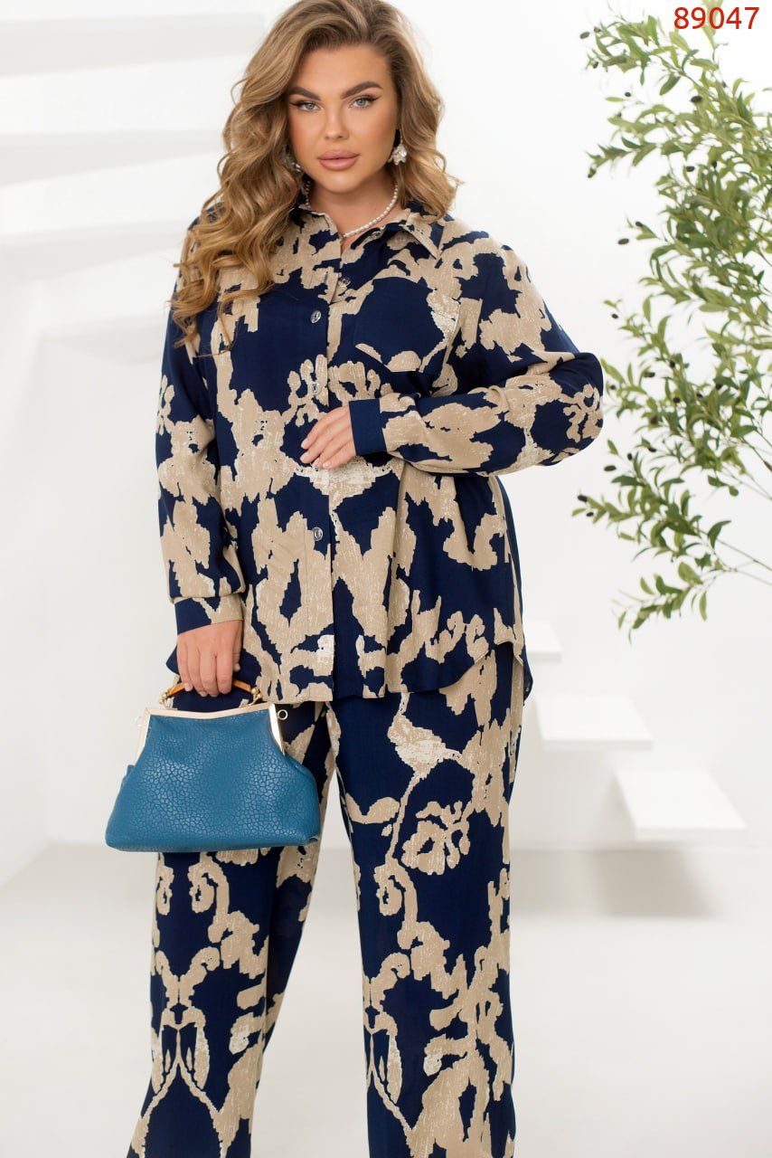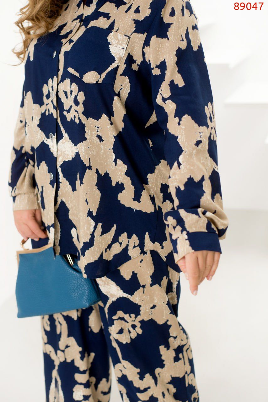 Легкий костюм із сорочки та брюк зі штапелю – ідеальний вибір для комфортних і стильних образів. Вільна сорочка з класичним коміром застібається на ґудзики, а довгі рукави з манжетами додають елегантності. Акуратна кишенька на грудях виступає стильним акцентом. Брюки з високою талією на резинці забезпечують комфортну посадку, а бічні кишені додають практичності. Завдяки своїй легкості та приємній текстурі тканина дарує комфорт. Цей костюм ідеально підійде для прогулянок, зустрічей або подорожей, дозволяючи почуватися невимушено та виглядати бездоганно.
