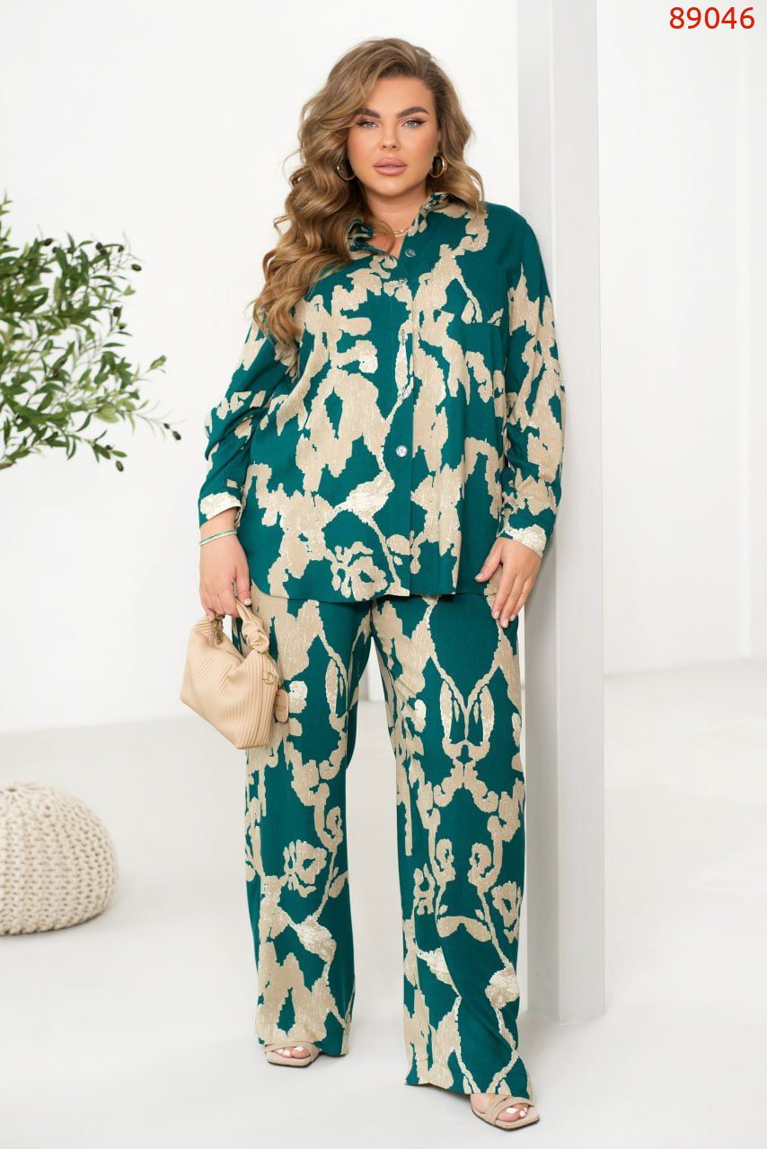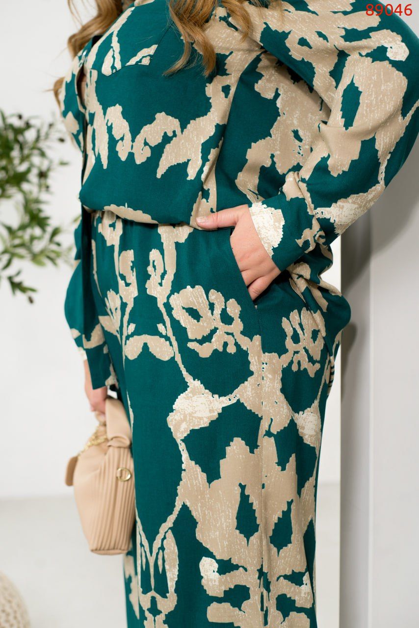 Легкий костюм із сорочки та брюк зі штапелю – ідеальний вибір для комфортних і стильних образів. Вільна сорочка з класичним коміром застібається на ґудзики, а довгі рукави з манжетами додають елегантності. Акуратна кишенька на грудях виступає стильним акцентом. Брюки з високою талією на резинці забезпечують комфортну посадку, а бічні кишені додають практичності. Завдяки своїй легкості та приємній текстурі тканина дарує комфорт. Цей костюм ідеально підійде для прогулянок, зустрічей або подорожей, дозволяючи почуватися невимушено та виглядати бездоганно.