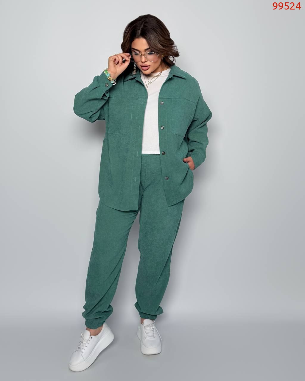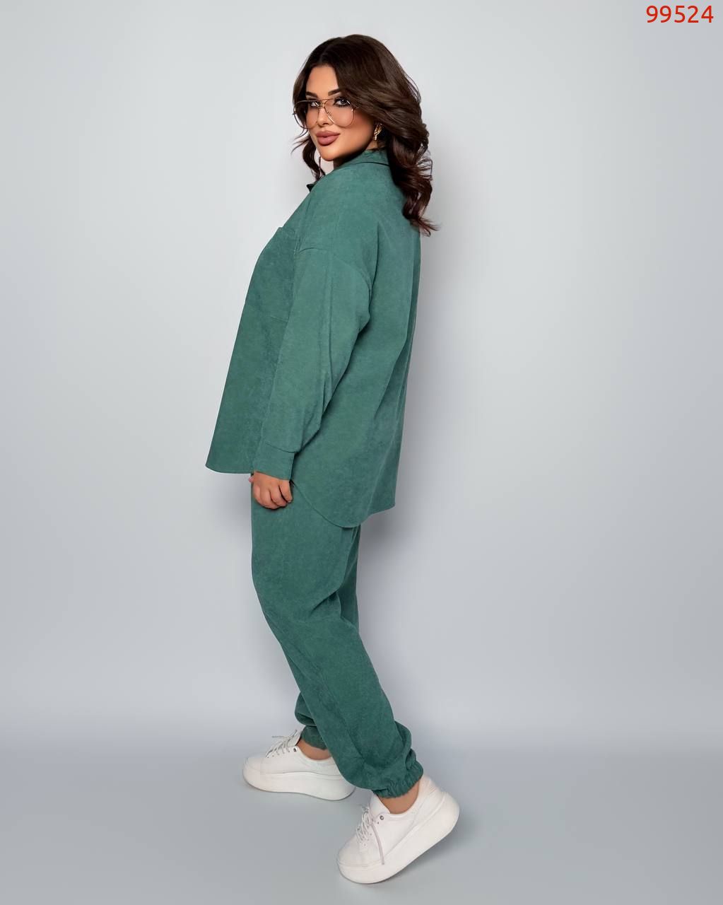 Сучасний жіночий костюм, який поєднує трендовий дизайн та максимальний комфорт. Комплект складається з вільної сорочки на ґудзиках та зручних брюк із манжетами. М’яка приємна до тіла тканина забезпечує комфорт протягом усього дня.