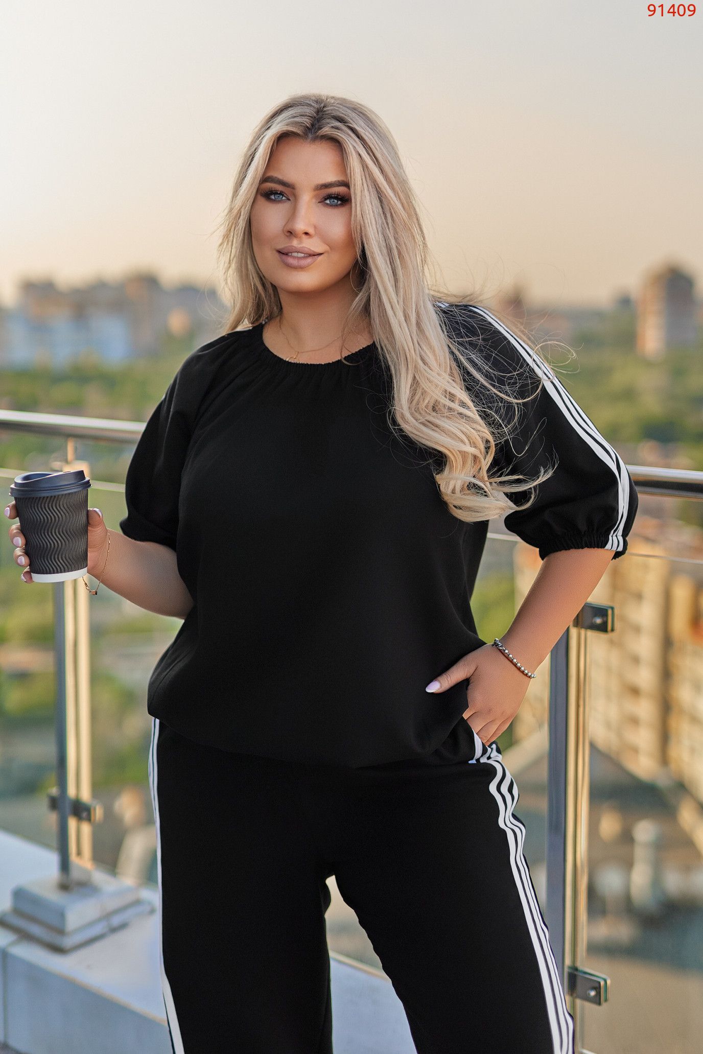 Спорт- шик костюм із кофтинкою вільного крою та прямими штанами по низу на резинці.