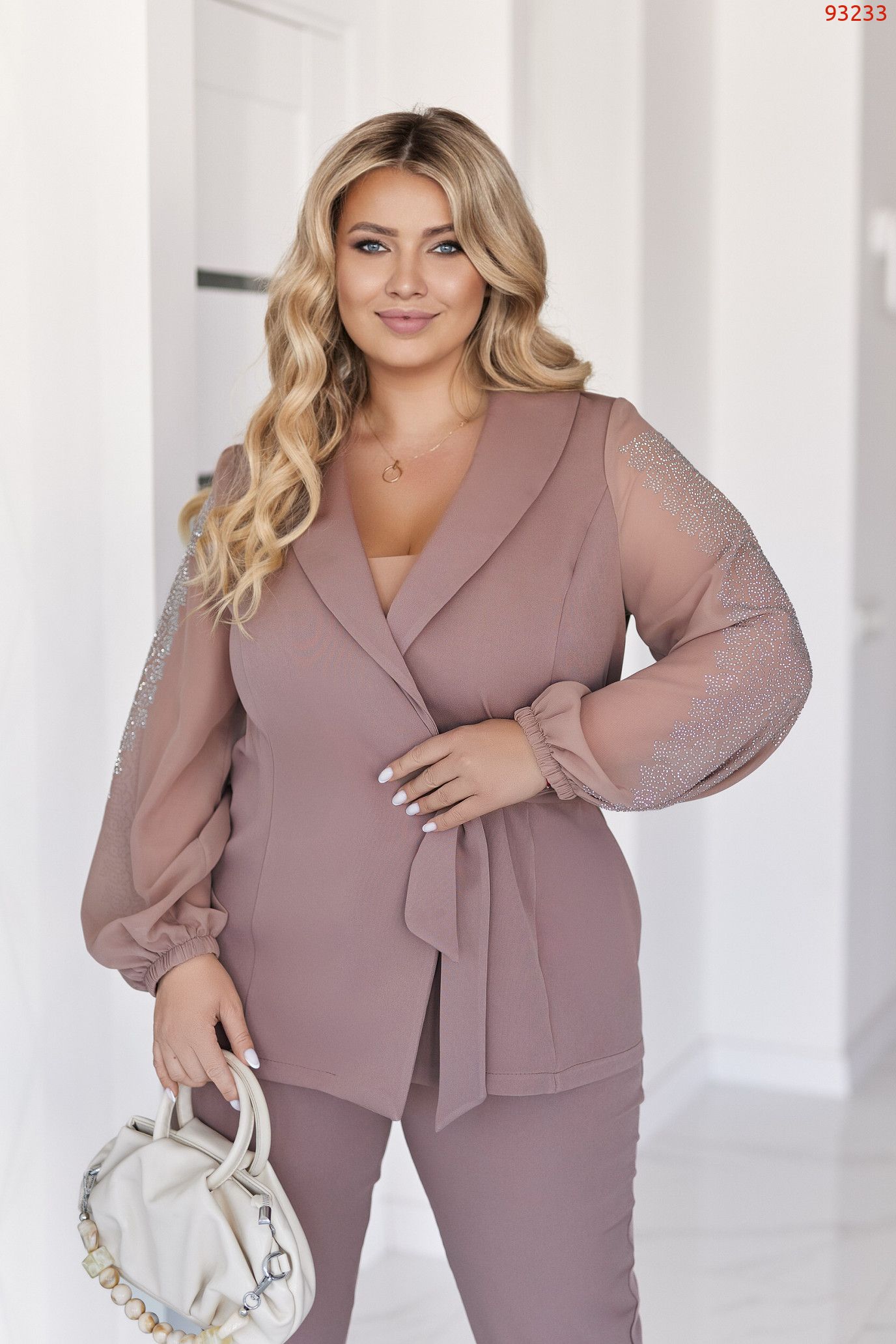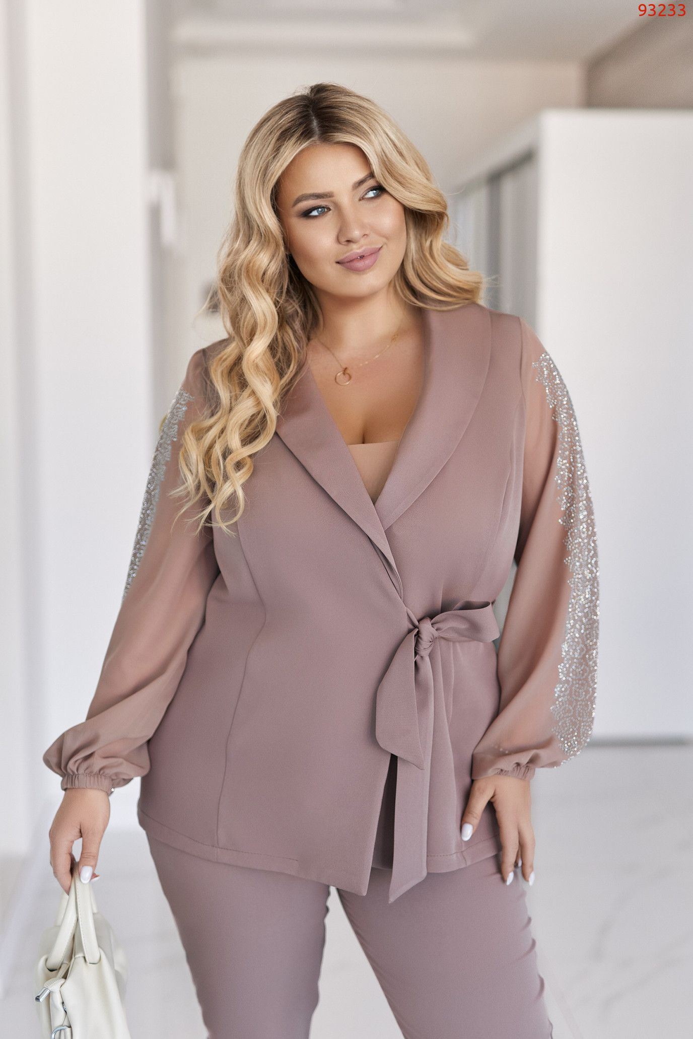 ▪︎ Елегантний костюм з костюмки діагональ у поєднанні з легкими шифоновими рукавами.
