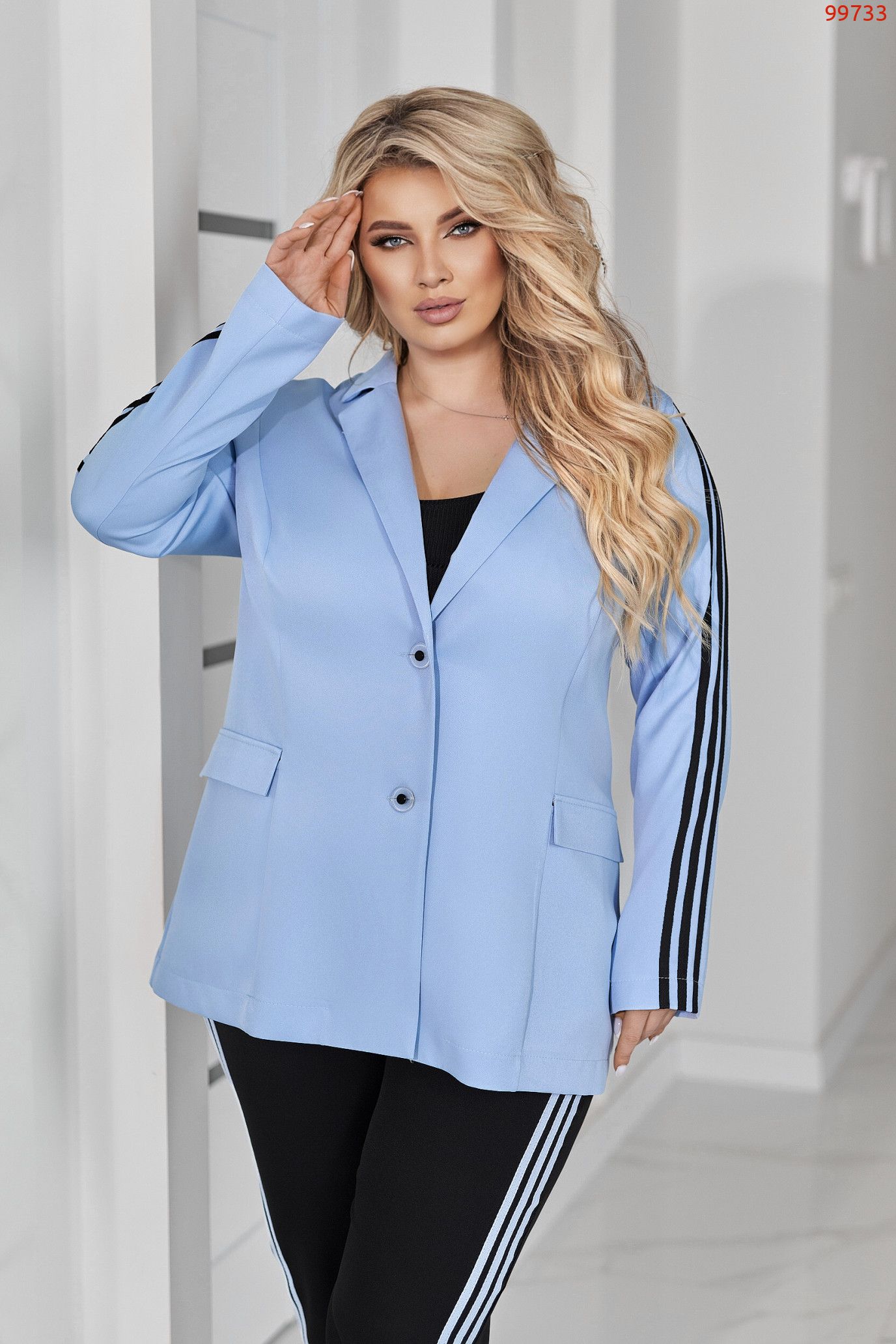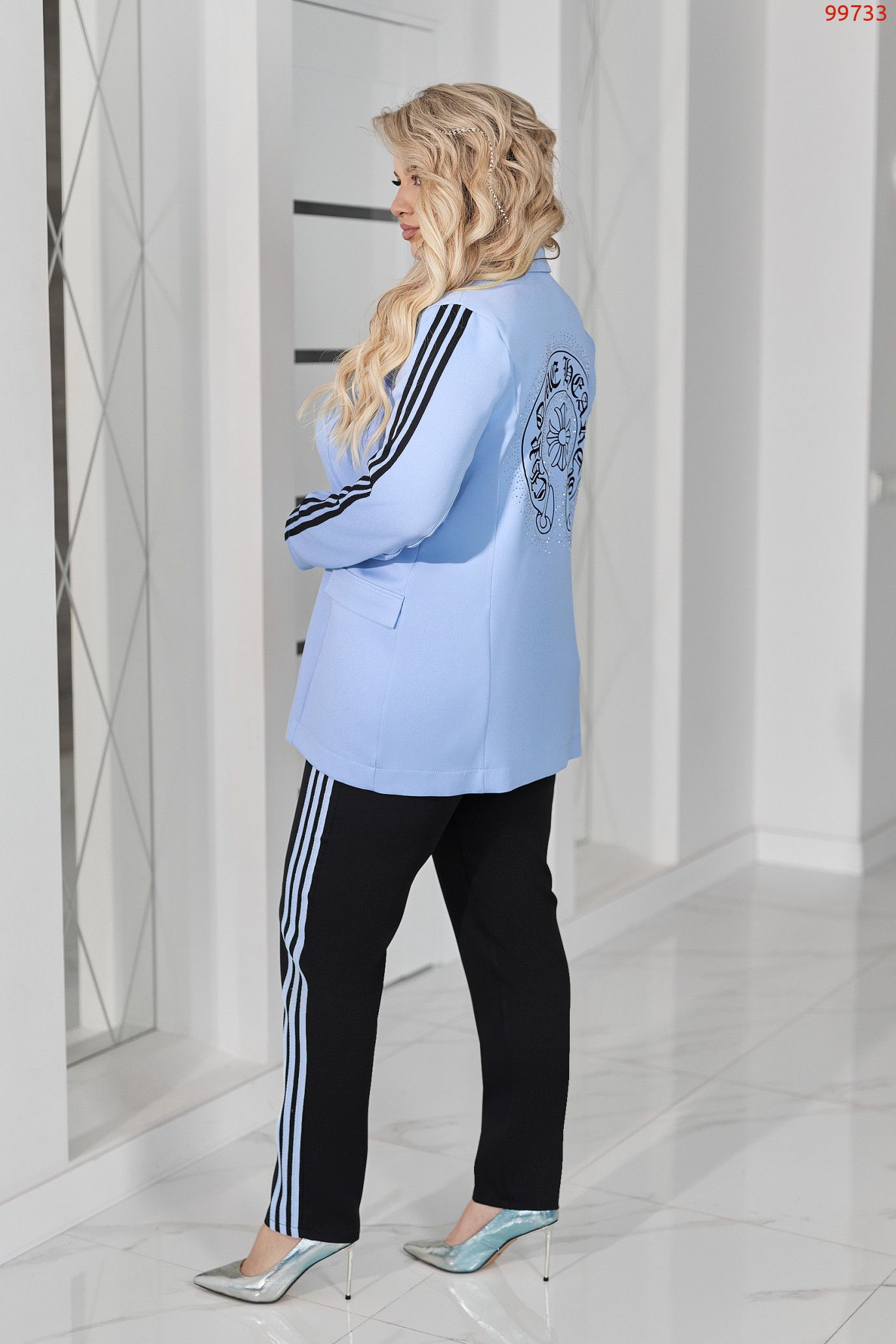 Рукава декоровані лампасами, що візуально витягують силует і додають динаміки образу.