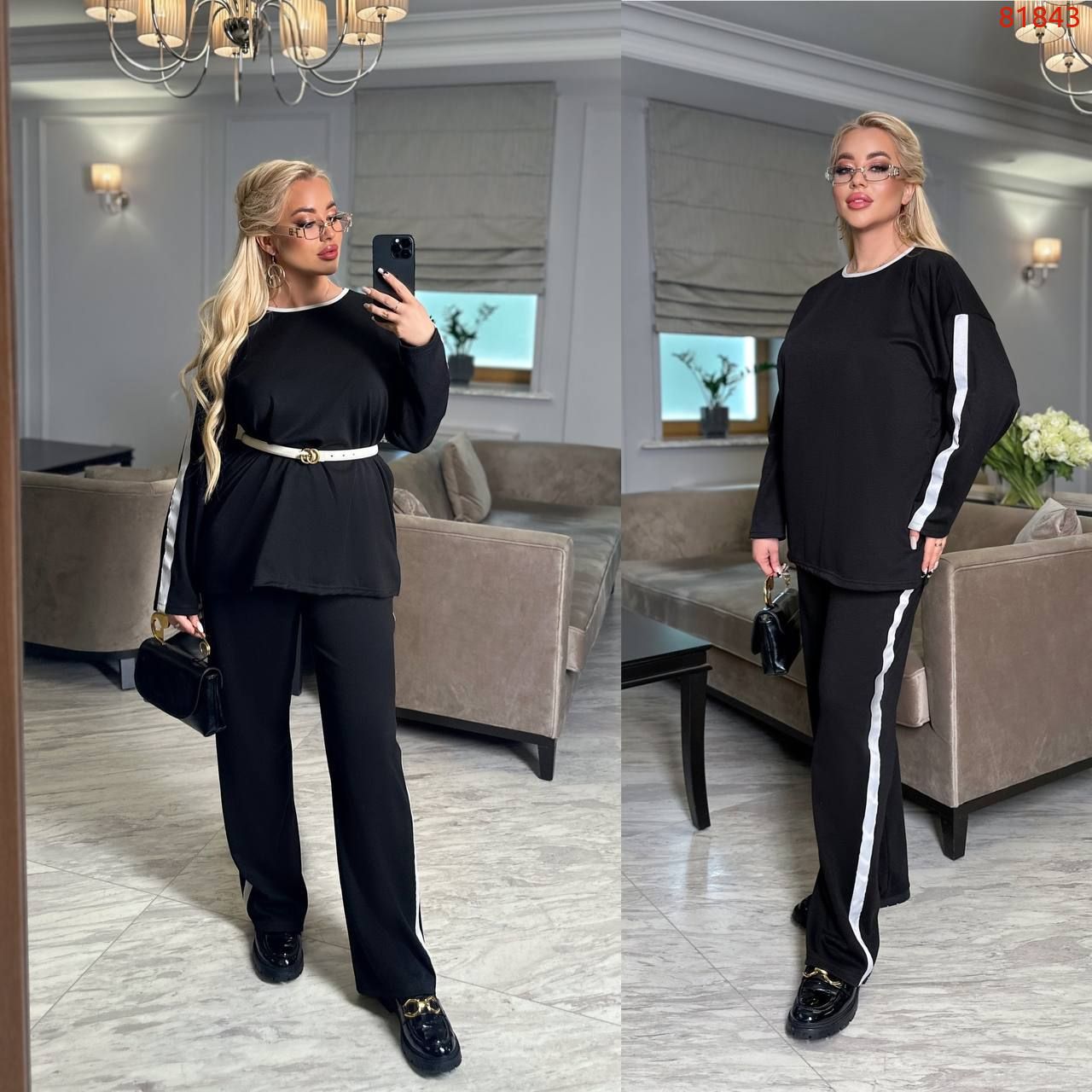 Штани палацо, висока зручна посадка штанів, кофтинка оверсайс, збоку розрізи.