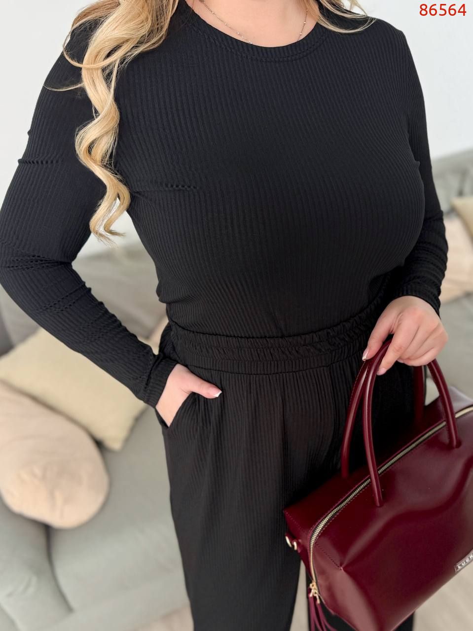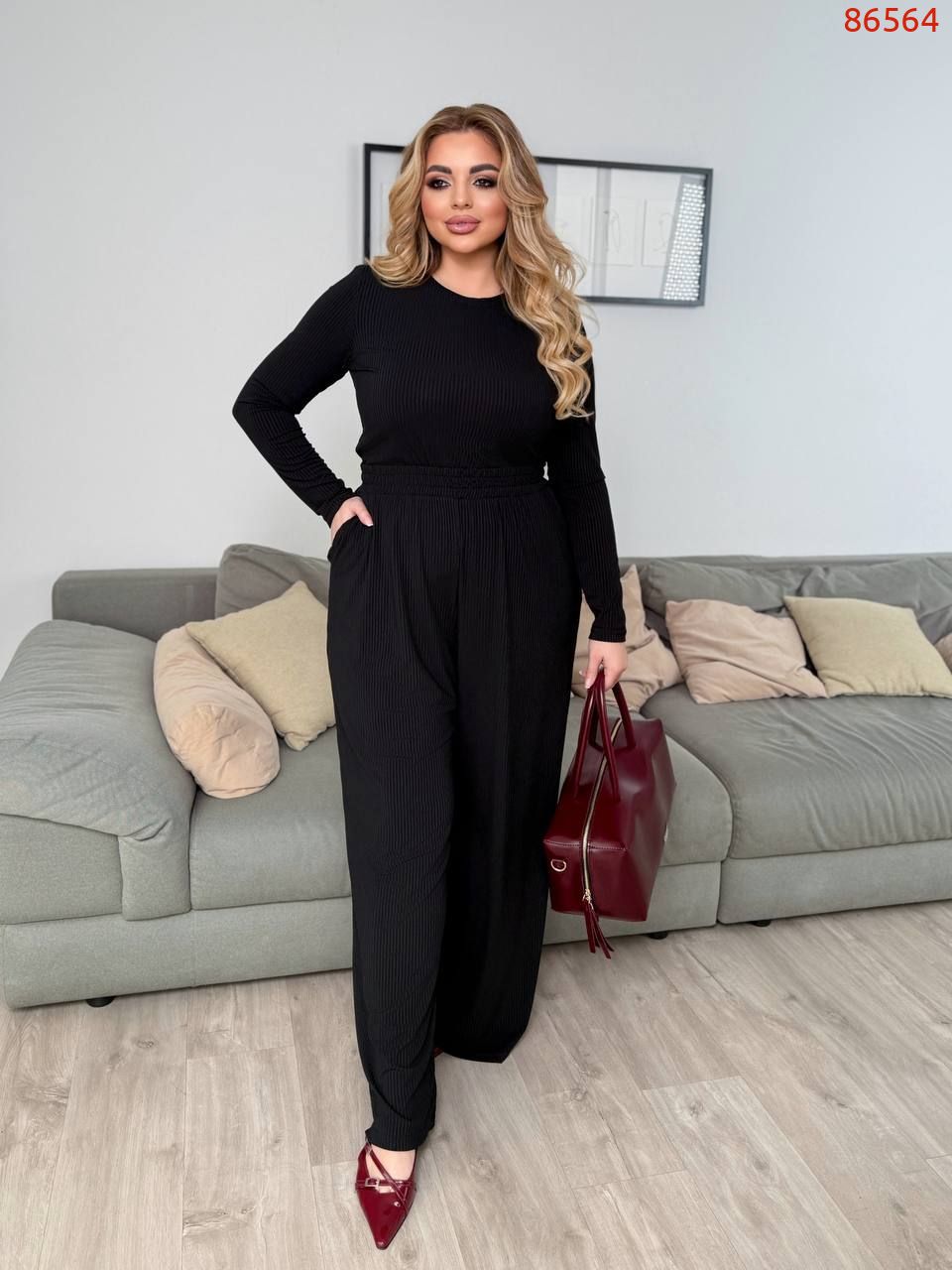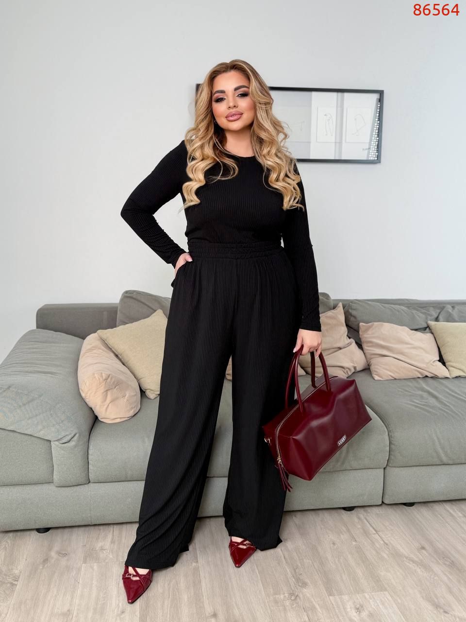 Топ: Ог 102 см, плече 14 см, рукав 65 см, спинка 64 см.