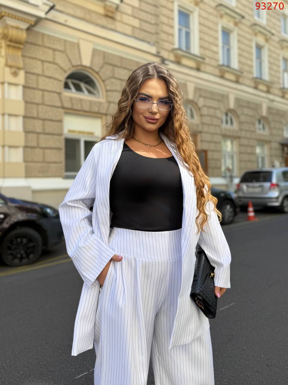 На штанах позаду резинка, піджак без застібок, та без підкладу)