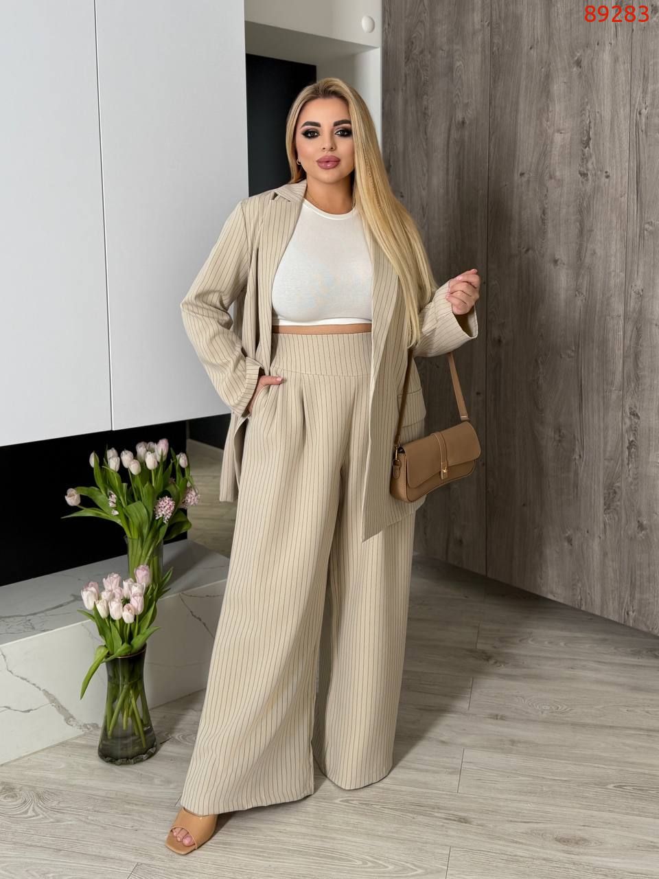 На штанах позаду резинка, піджак без застібок, та без підкладу)