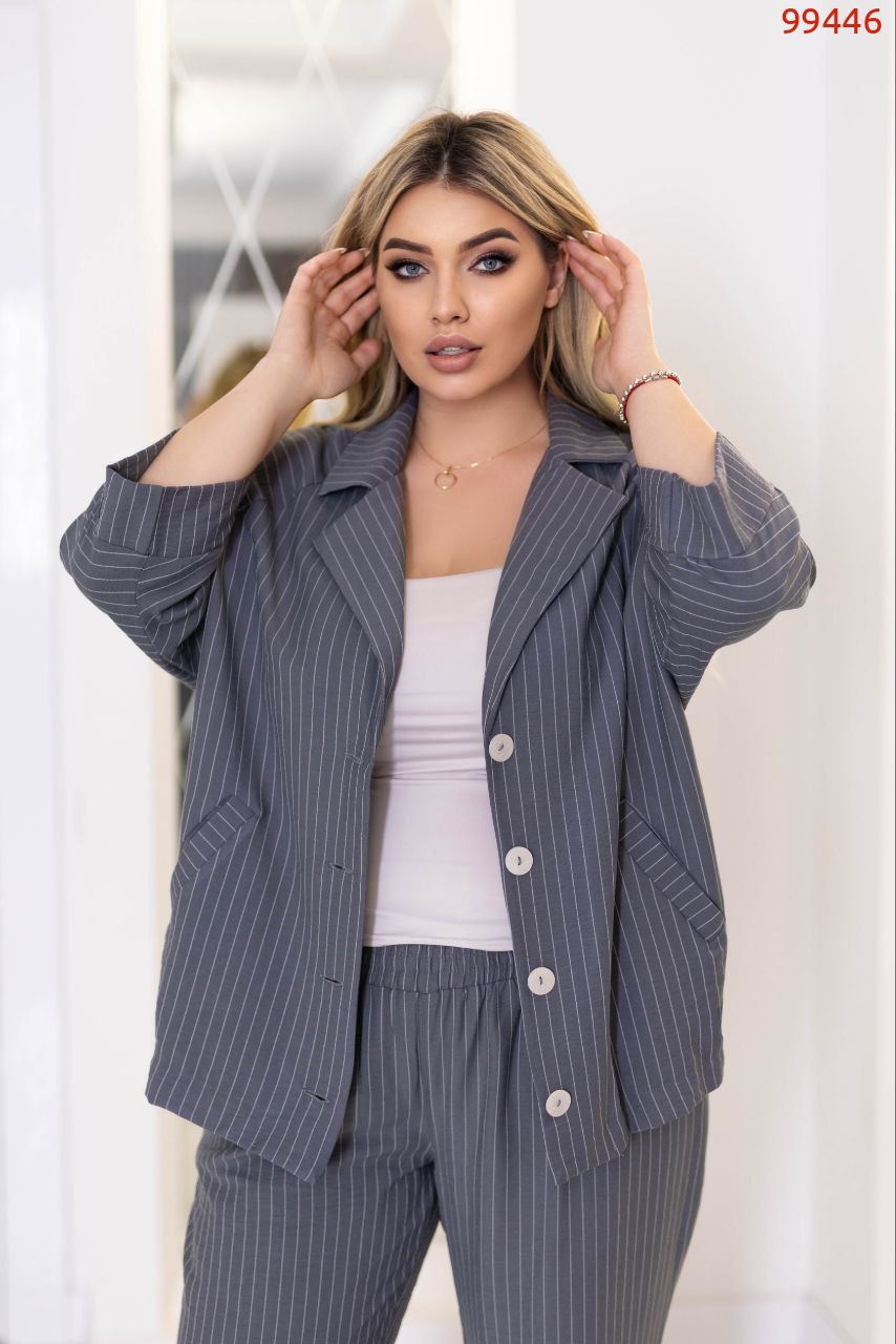 Костюм в смужку сірий №99446