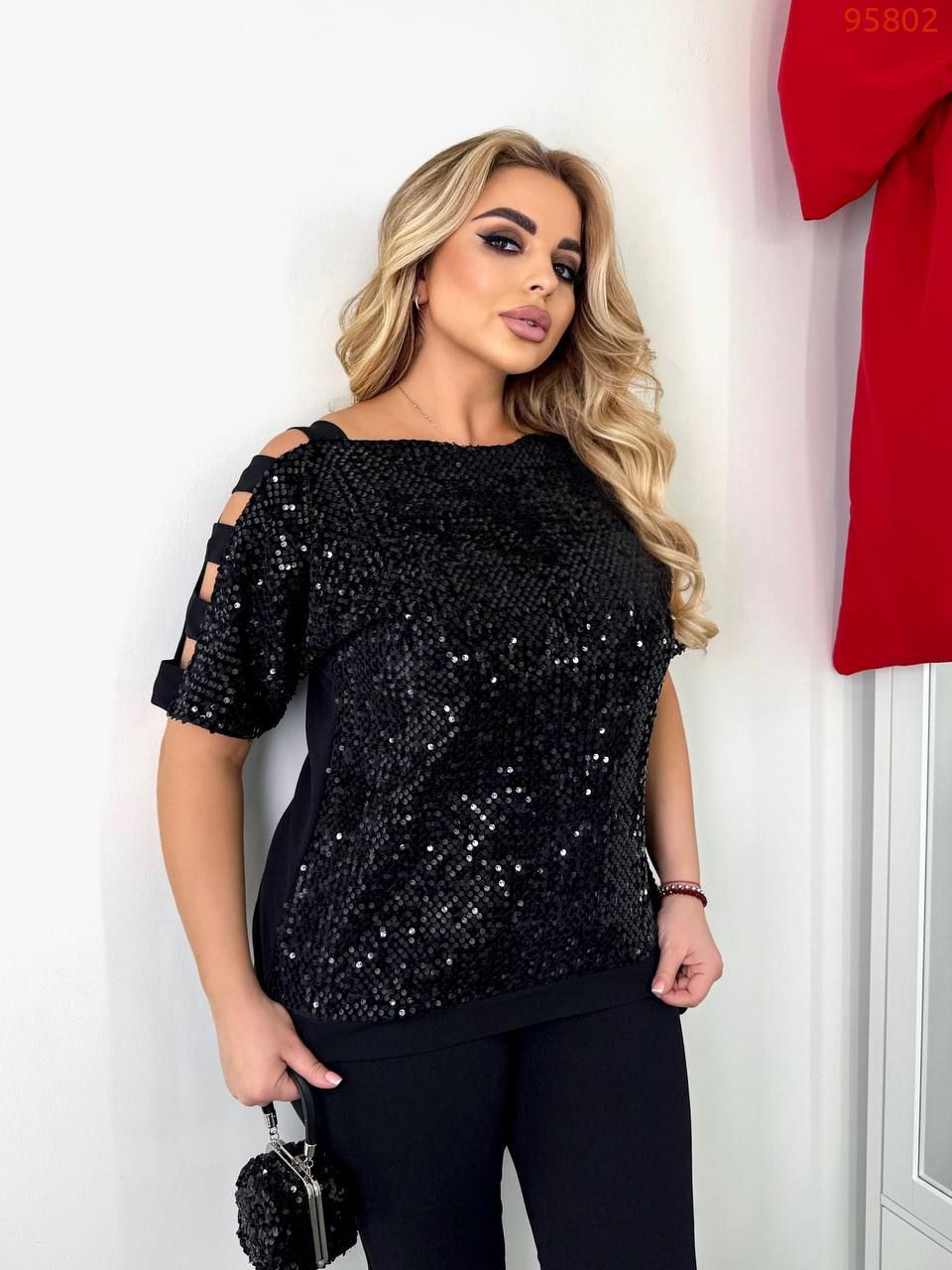 58-60 Довжина кофти - 66 см, довжина рукава від горла 36 см, об'єм руки 42 см, Ог - 131 см, довжина лосин зі зміками - 106 см, Об - 126 см, от гумка - 116 см., висота сидіння перед 39 см, висота сидіння зад-46см, об'єм гомілки 44 см