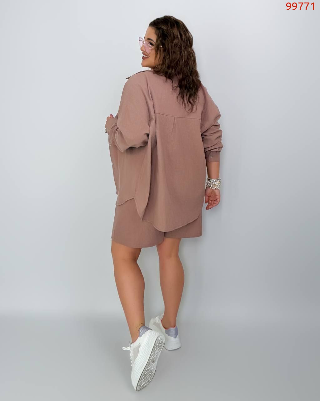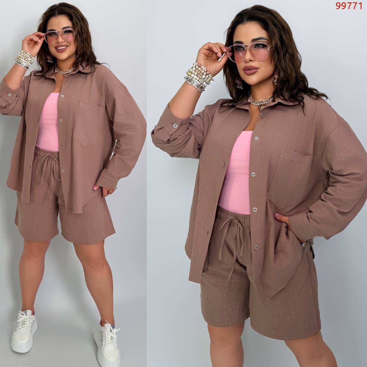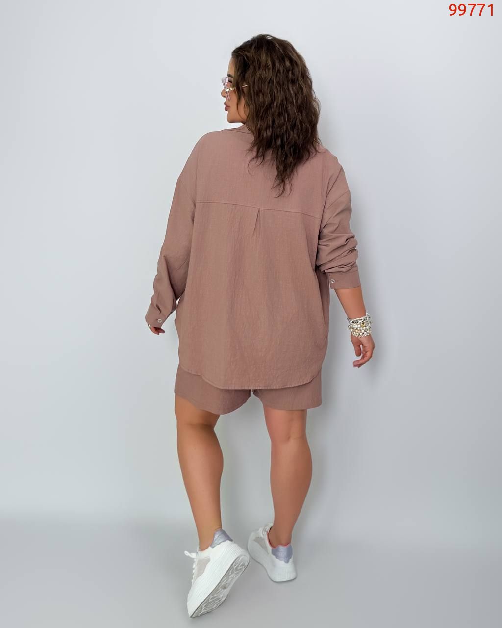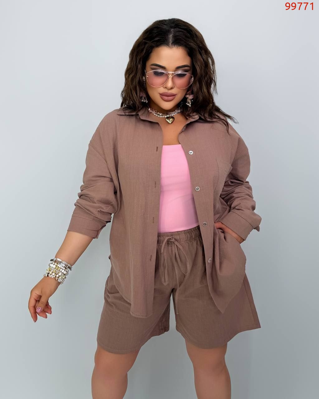 Костюм із жатого льону мокко №99771