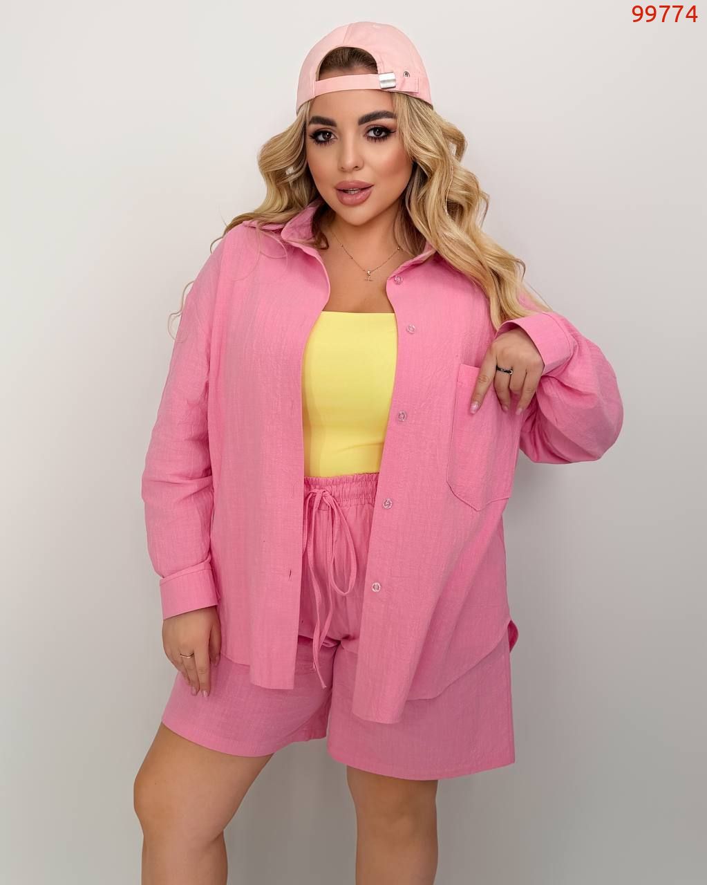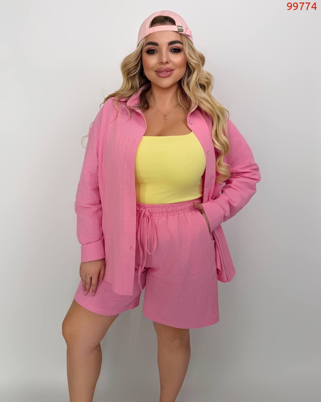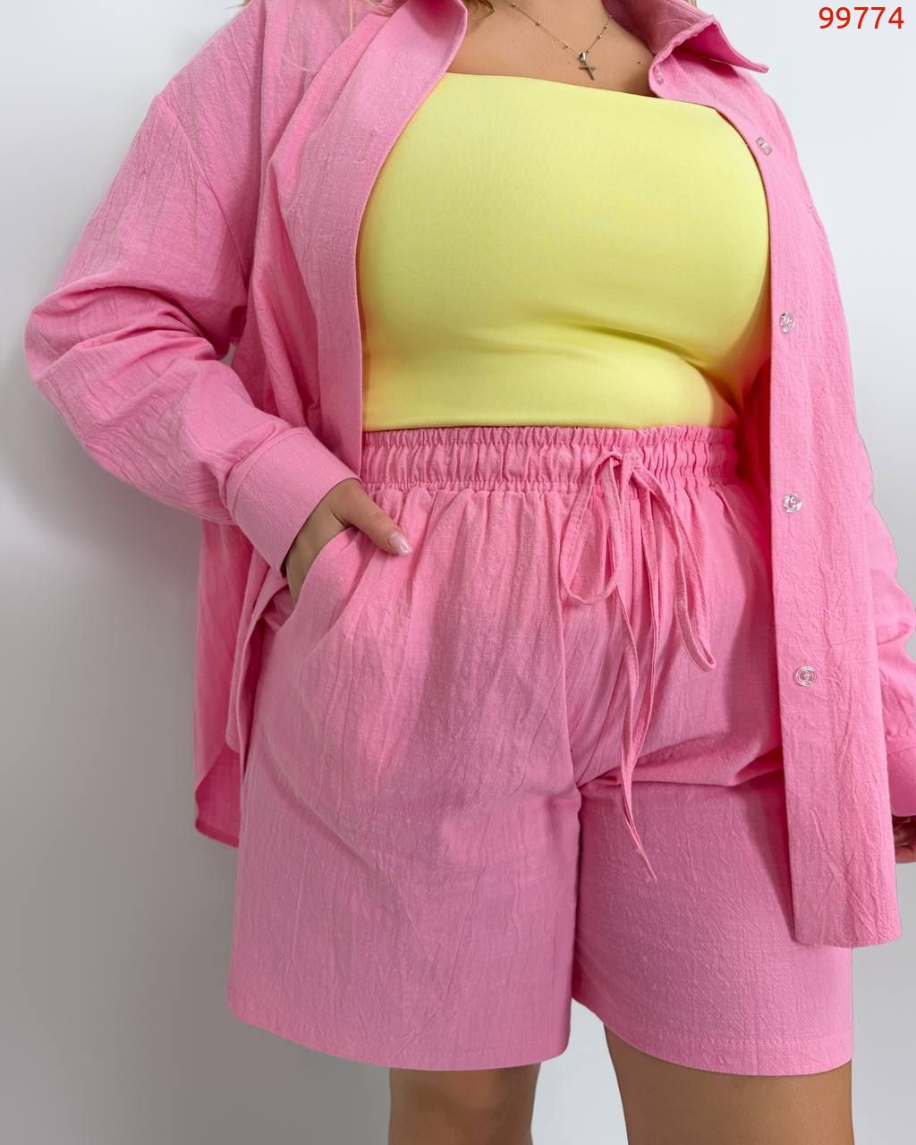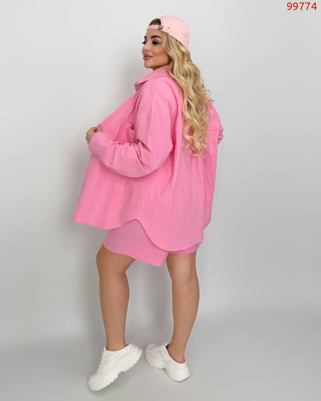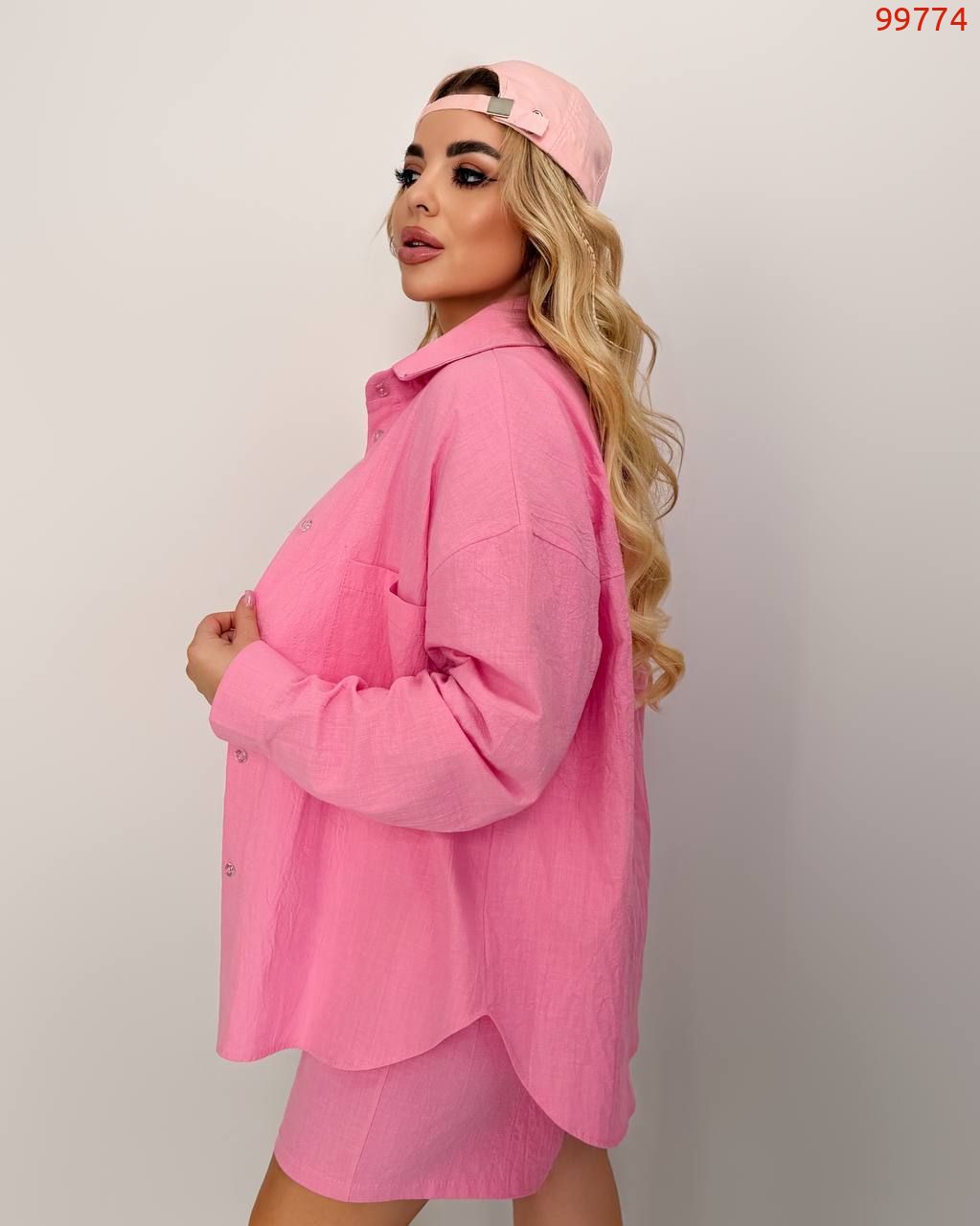 Костюм із жатого льону рожевий №99774