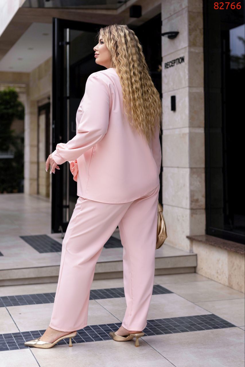 Штани на резінці з кишенями, по низу вільні. Нарядний костюм блузка вільна, рукавичк довгий на призборці