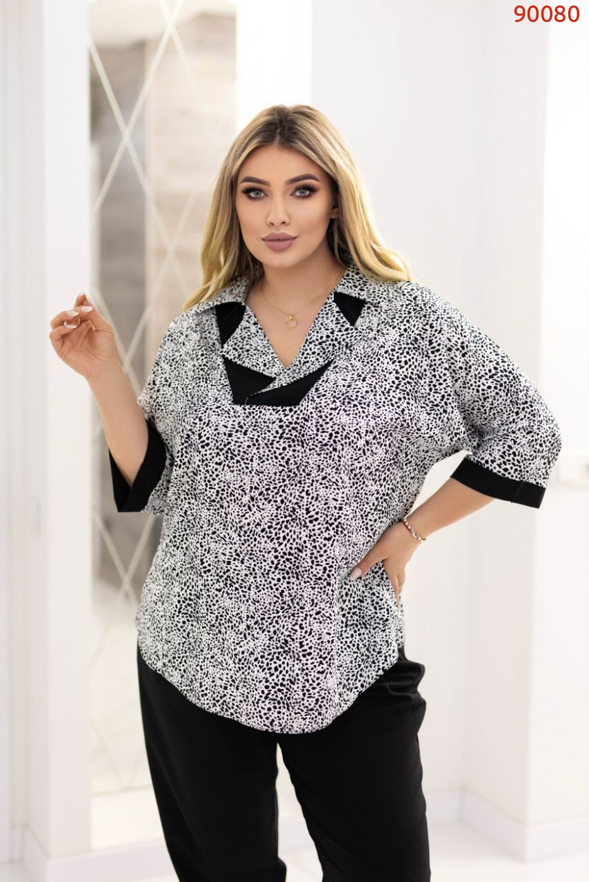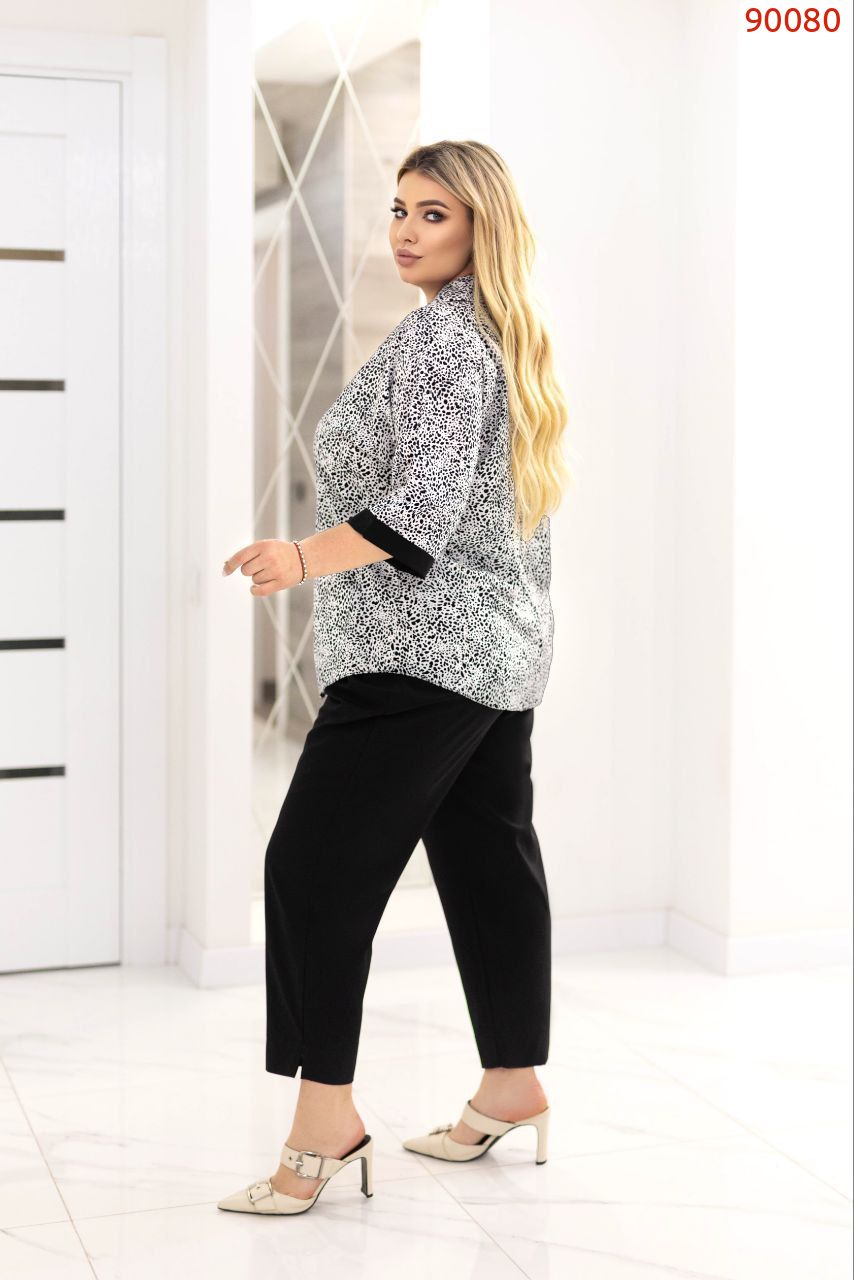Чудовий костюм який надасть вам свіжості, жіночності та гарного настрою на весь день. Блуза вільня дуже гарним комірцем.