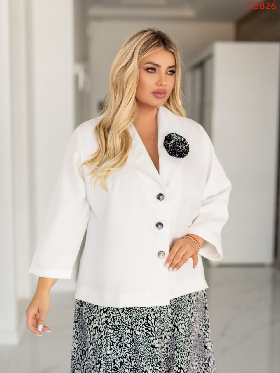 Піджак вільного крою. який прикрашений знімною брошкою .