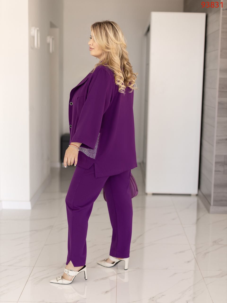 Спинка піджака продовжена по бокам має гарні вирізи , кишені оздоблені стразами які дуже сяють.