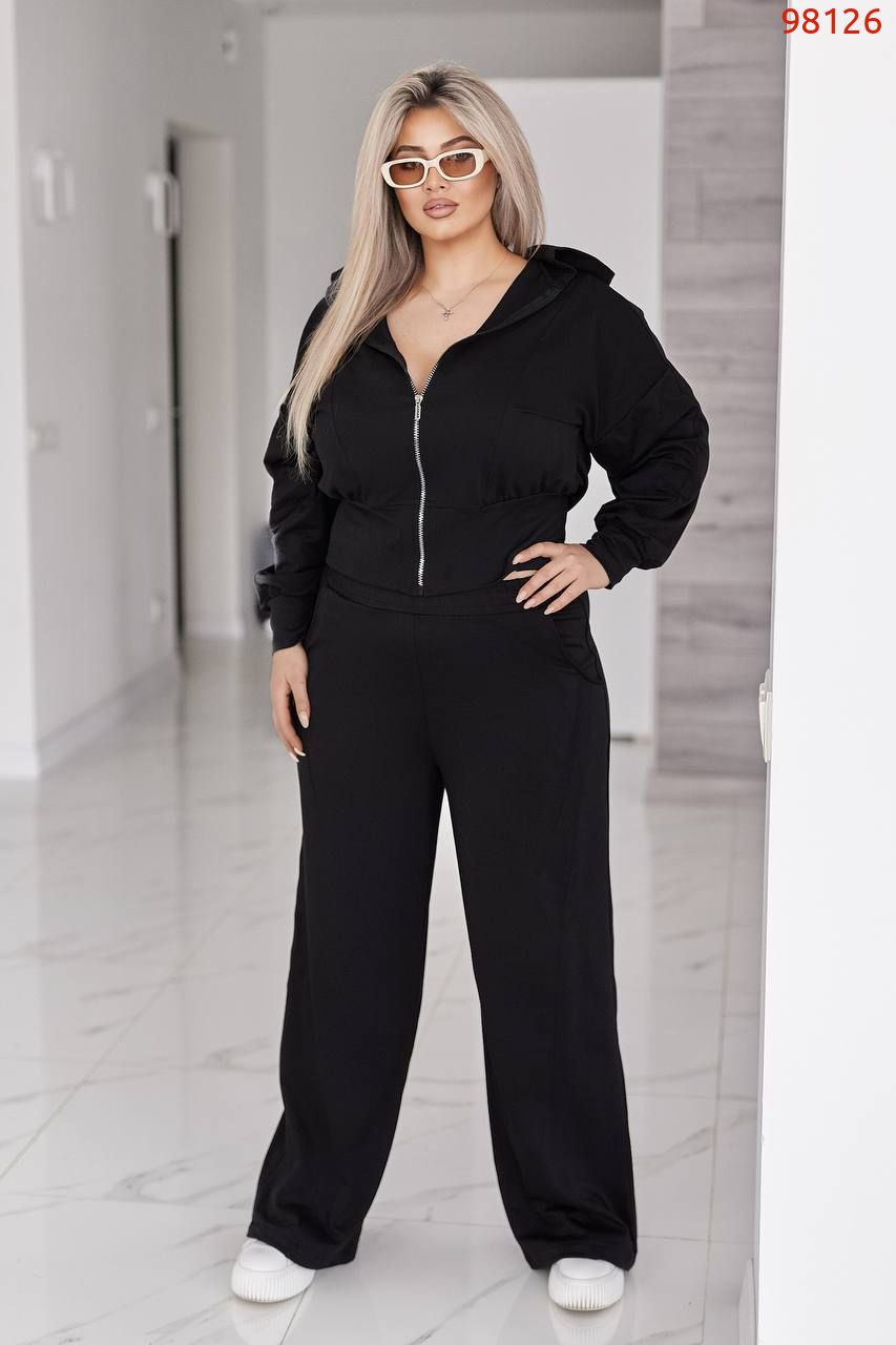 Жіночий костюм у стилі casual і athleisure, складається з кофти та штанів.
