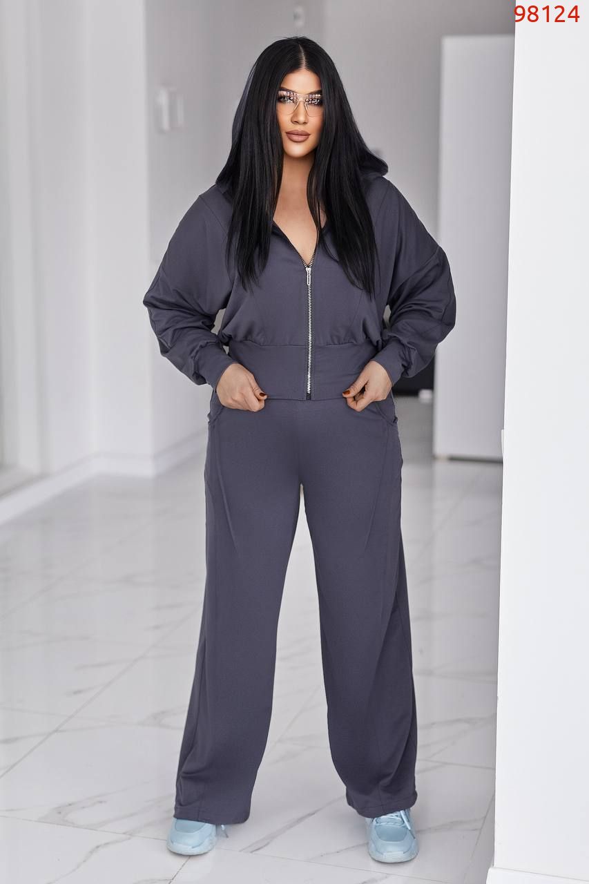 Жіночий костюм у стилі casual і athleisure, складається з кофти та штанів.