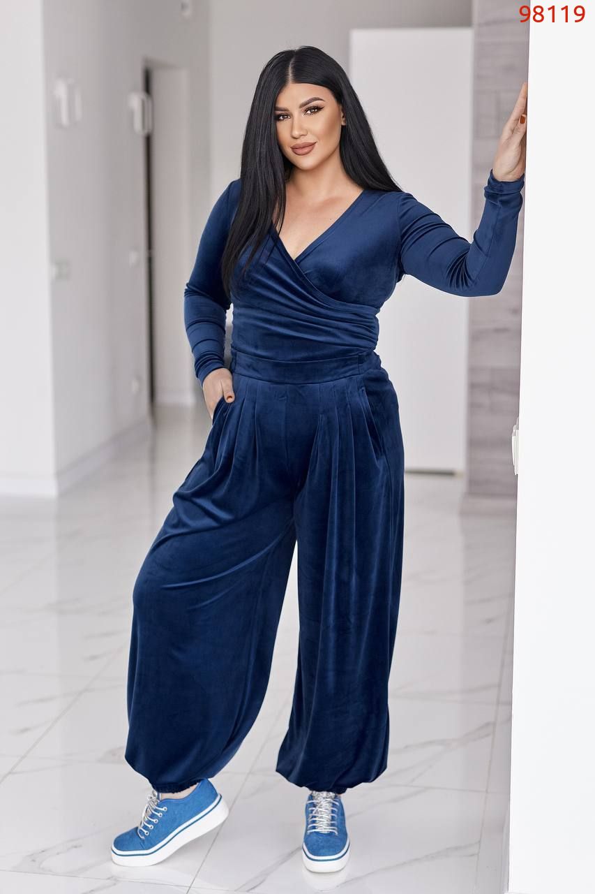 Стильний жіночий костюм у трендових відтінках, що поєднує комфорт і витончену жіночність. Виконаний з м’якого, приємного до тіла велюру з легким благородним блиском, який красиво переливається при русі.