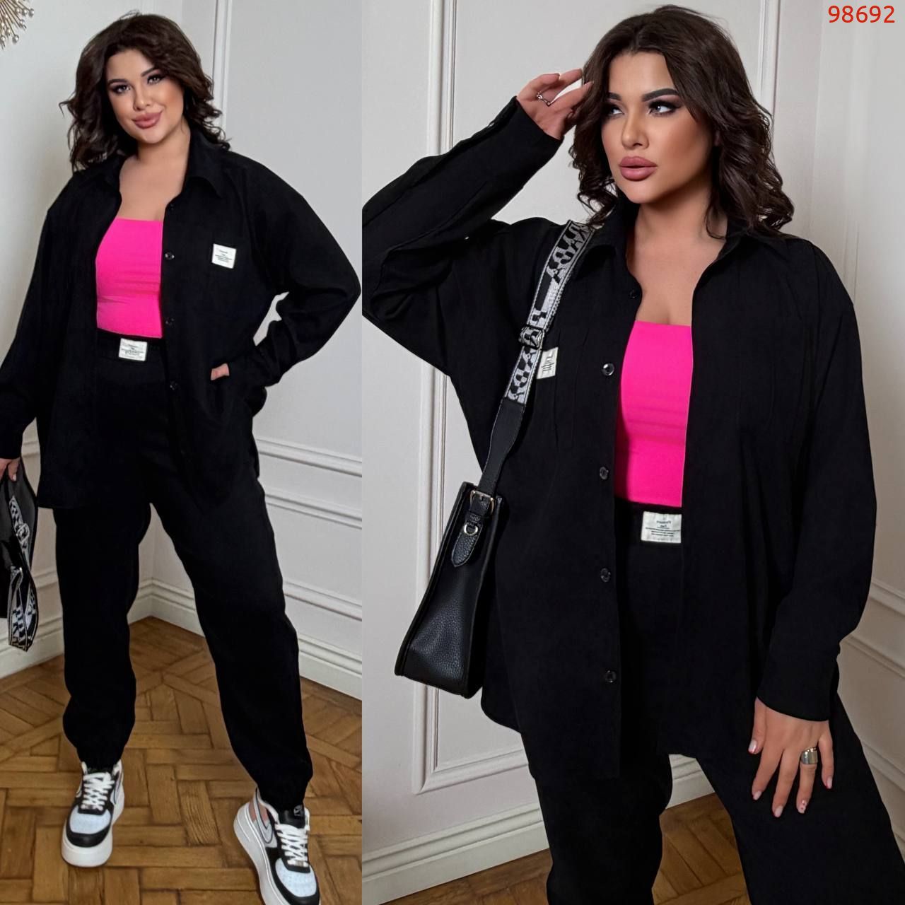 Стильний прогулянковий костюм із мікровельвету: Сорочка вільного крою на гудзиказ, з робочими кишенями + джогери з високою посадкою з кишенями у бічних швах. На поясі та знизу на гумці.