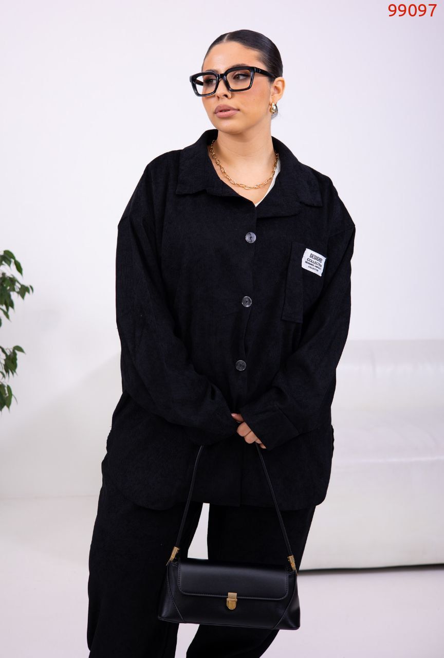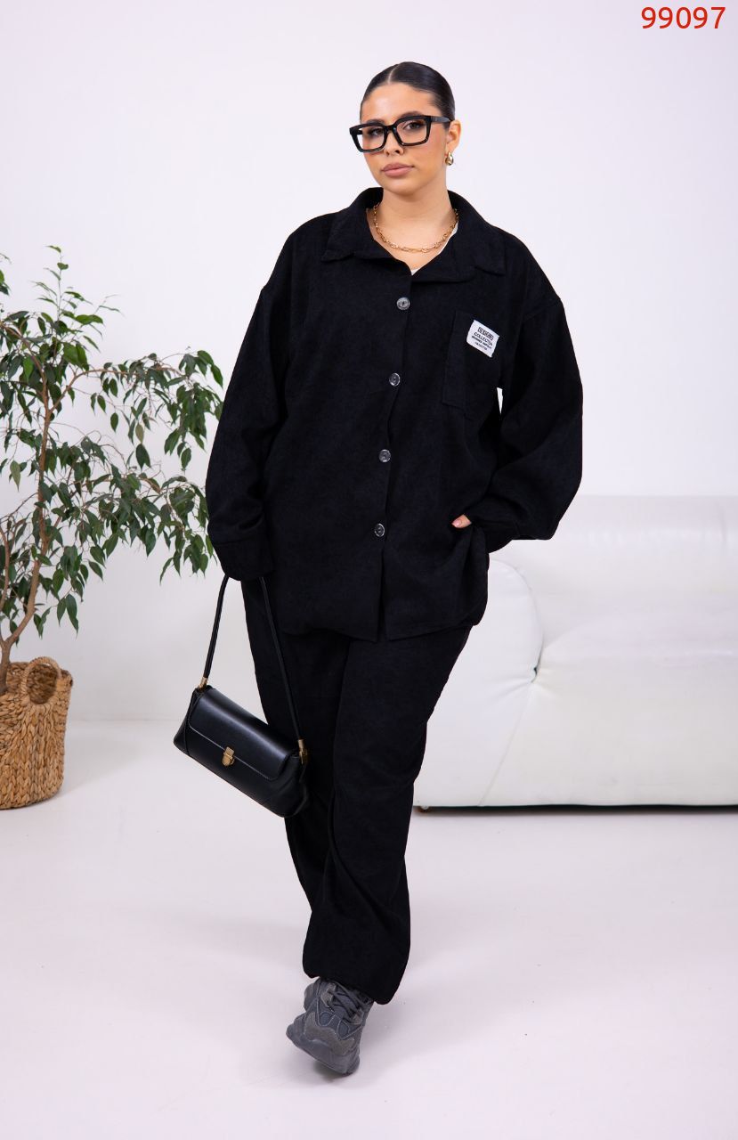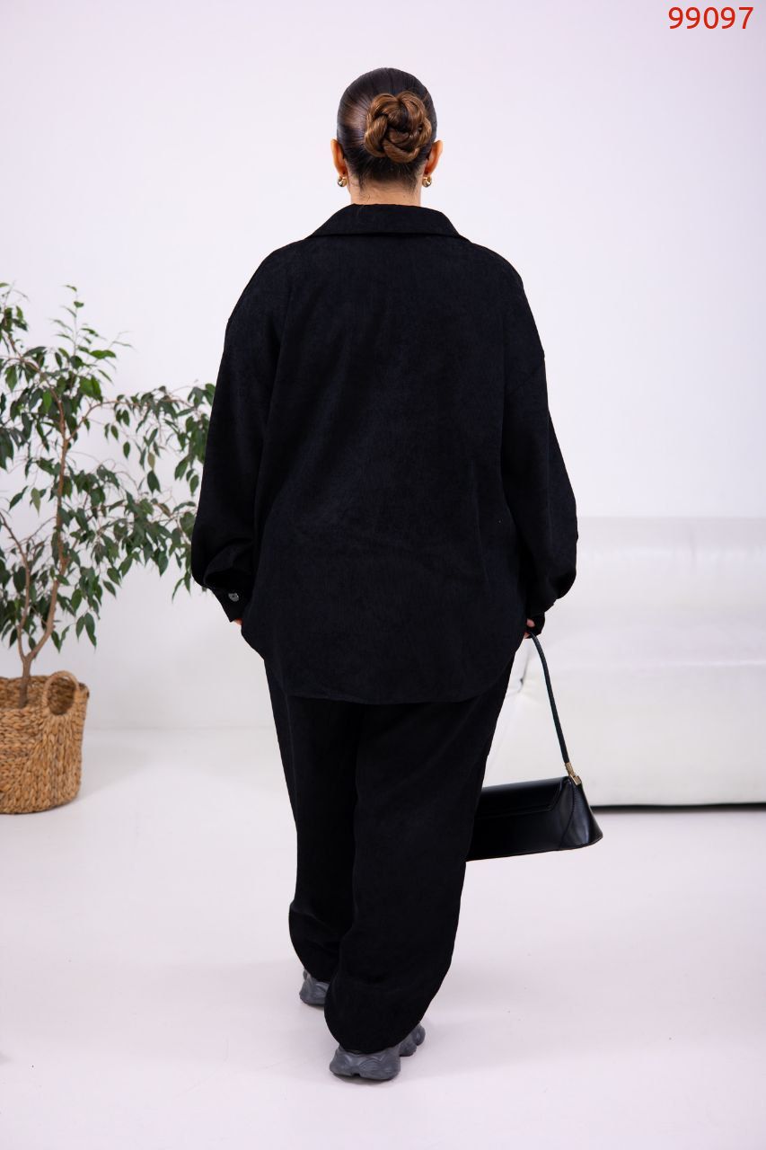 Стильний костюм з оверсайс сорочки на ґудзиках та джокерів на широкому поясі