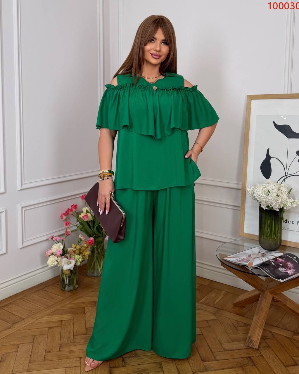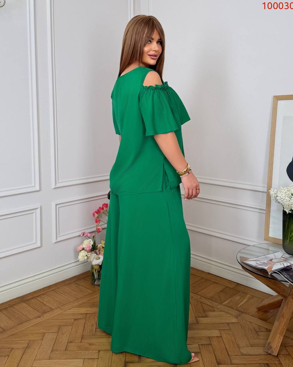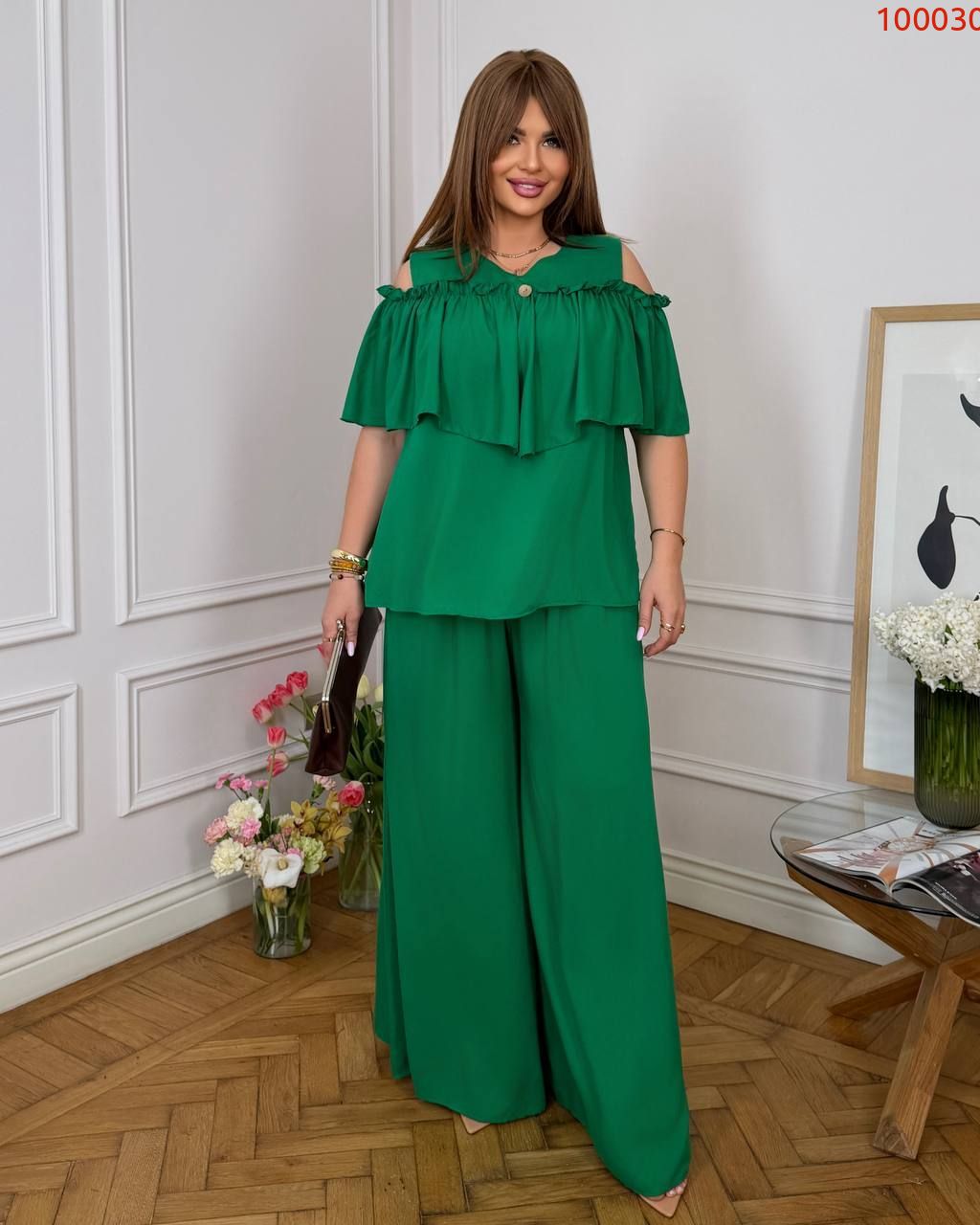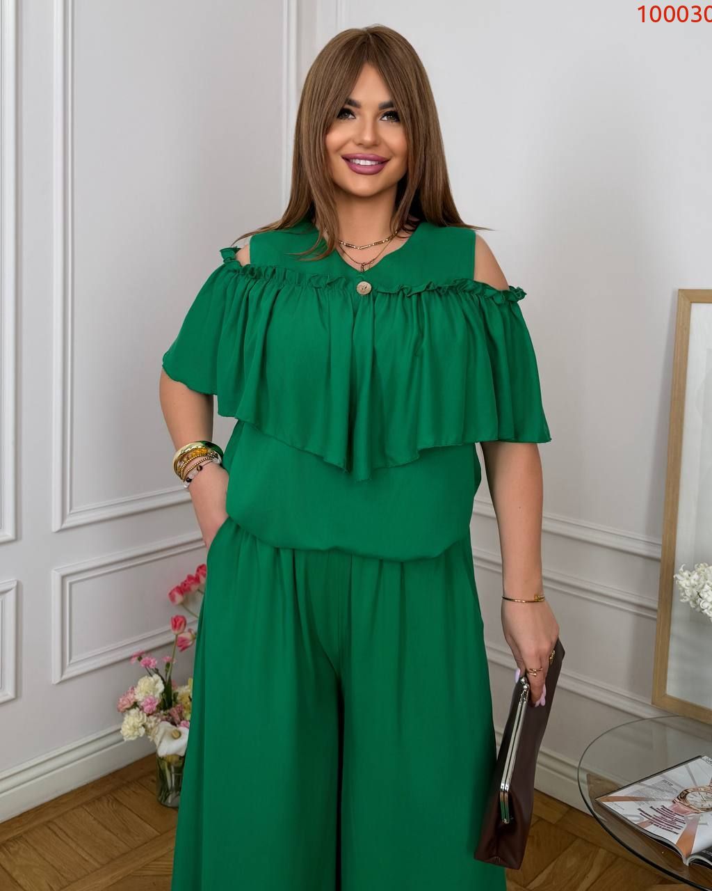 Елегантне і сучасне вбрання, що підходить для літнього виходу, вечірки, прогулянки або стильного заходу. Незважаючи на розслаблений крій, образ виглядає зібрано та жіночно
