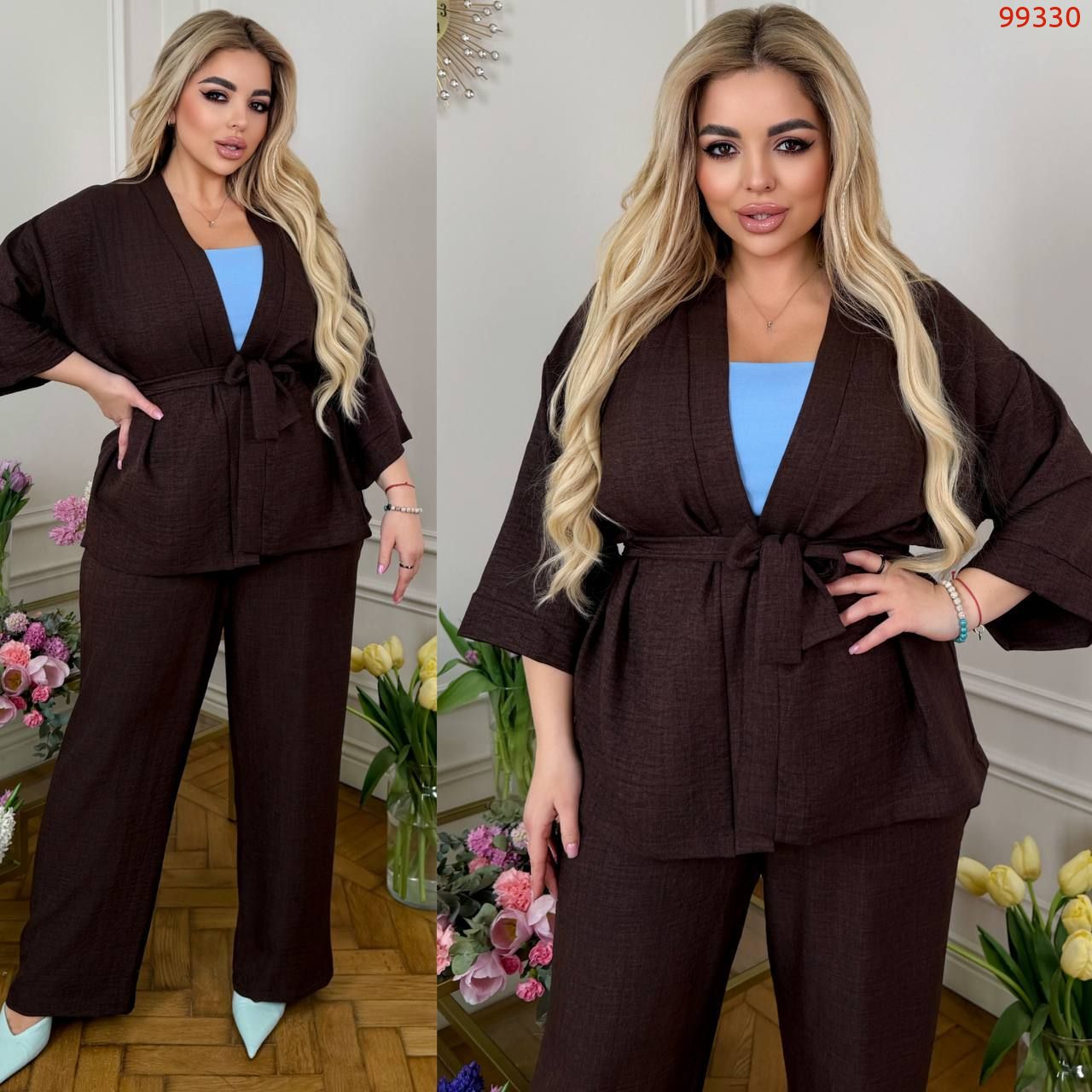 Стильний прогулянковий костюм зі льону «Бохо» шоколад №99330