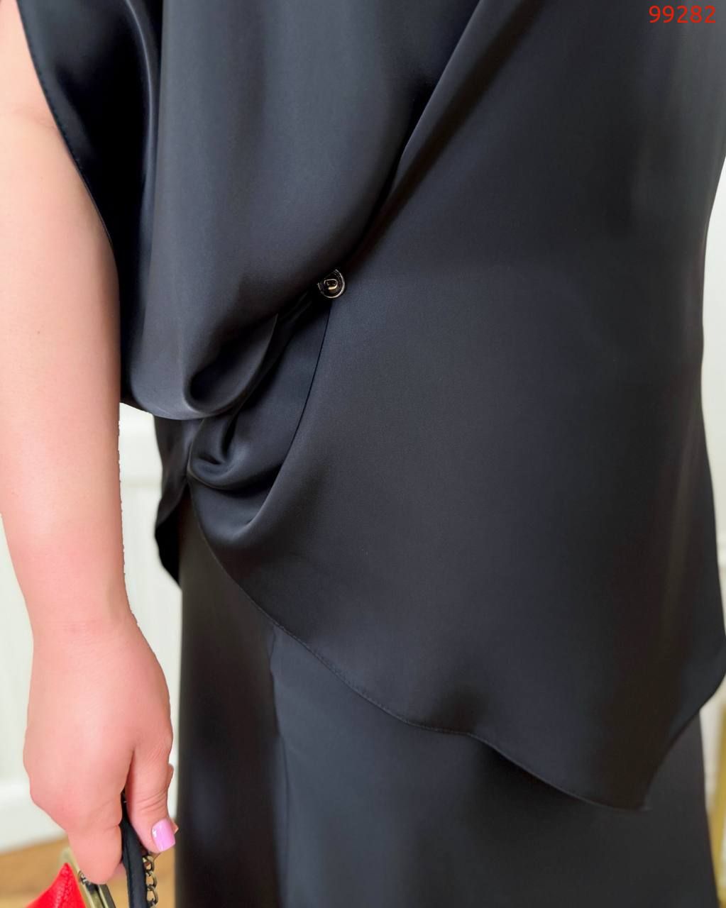 Трендовий костюм з спідницею,класна блуза летучка чорний №99282