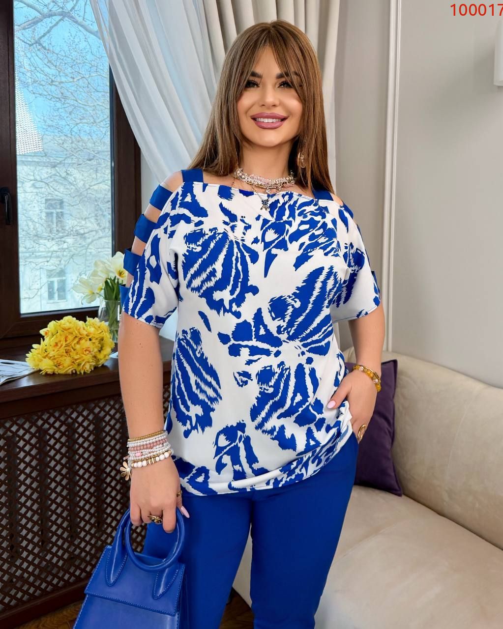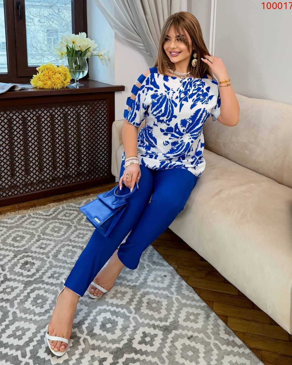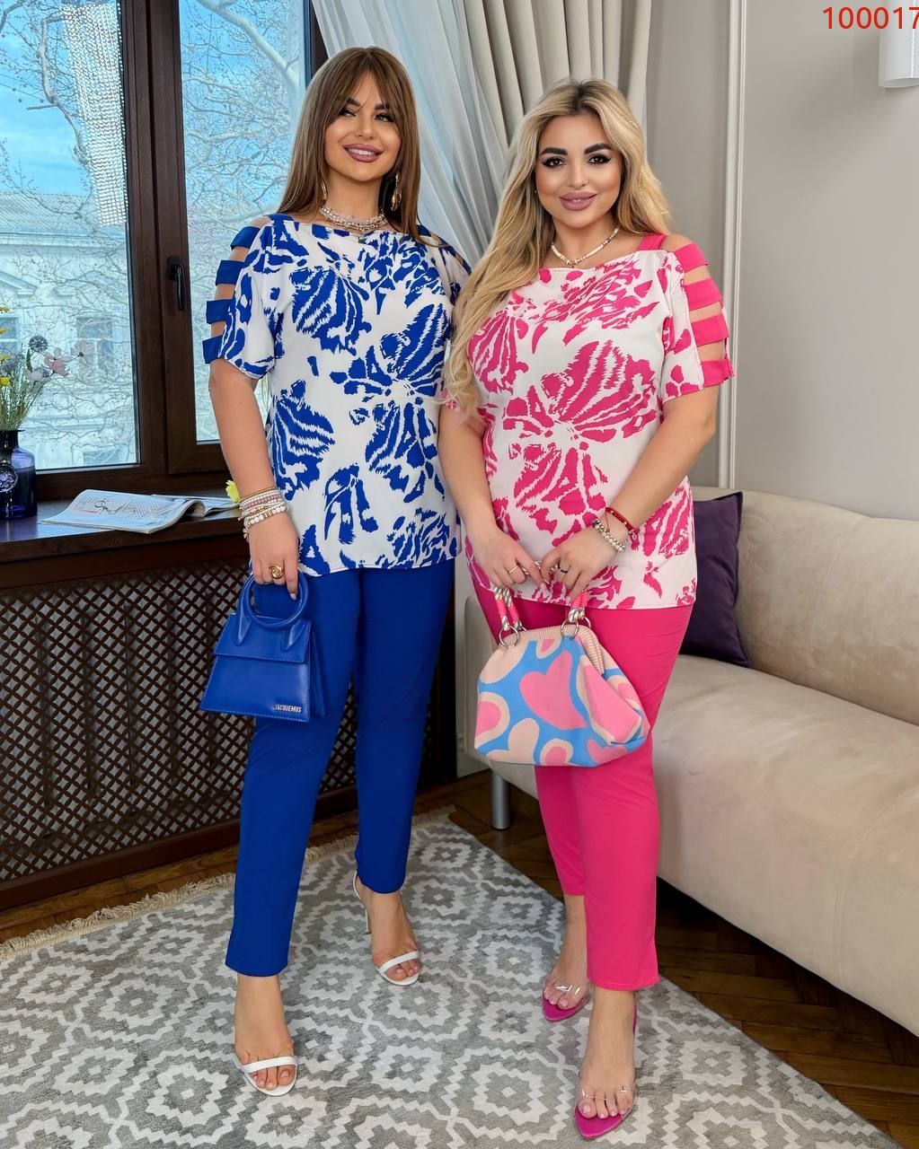 Яскравий, сучасний та стильний костюм. Він складається з блузки та брюк: