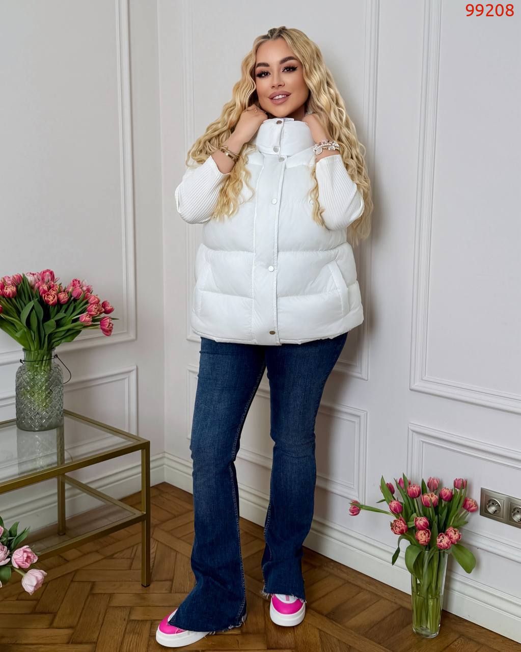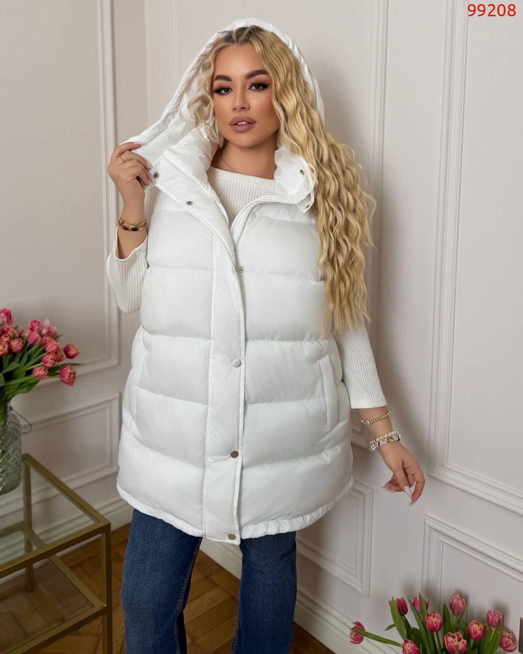 Жилет зі зйомним капюшоном молочний №99208