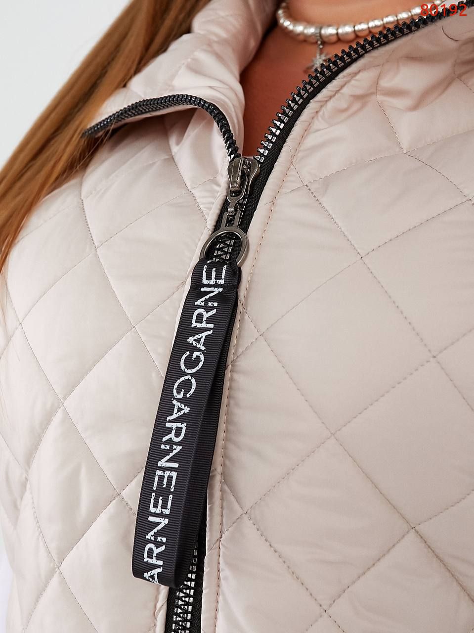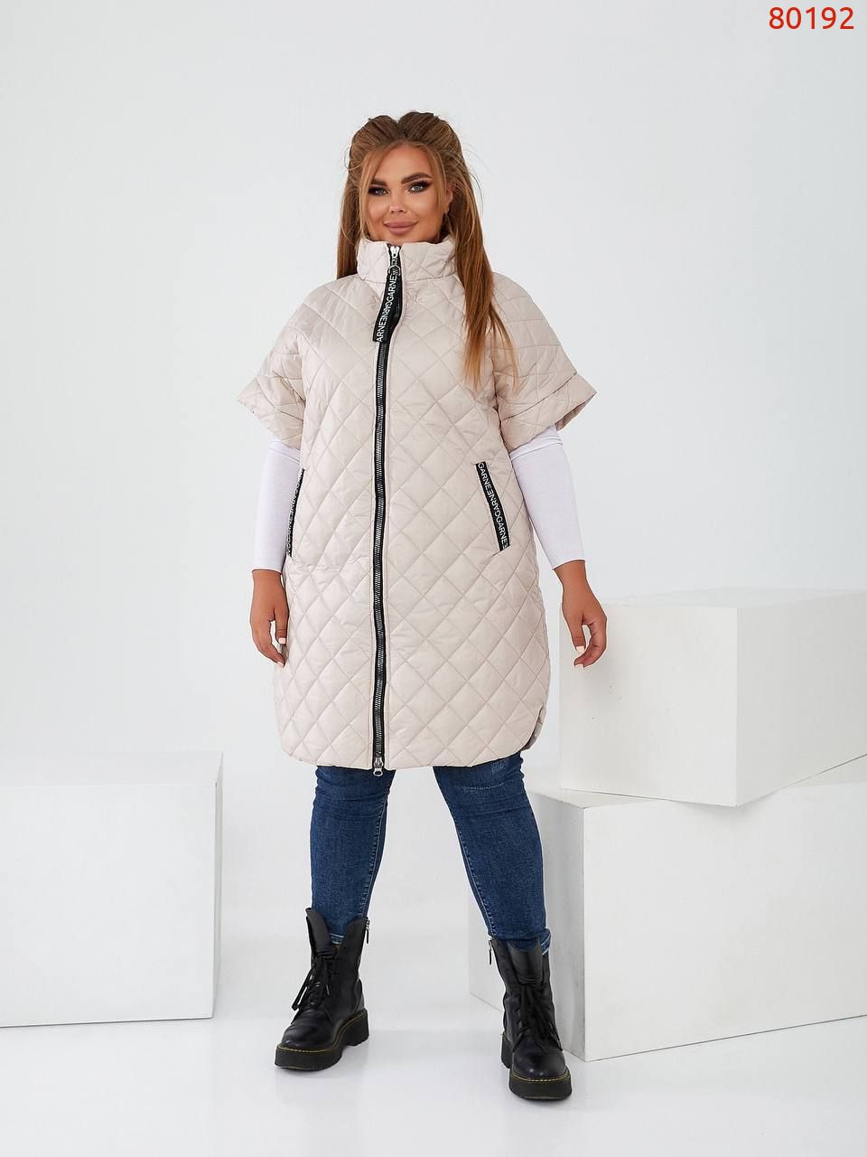Стильна стегана жилетка зі спущеним рукавом, якісна фурнітура, нашивка