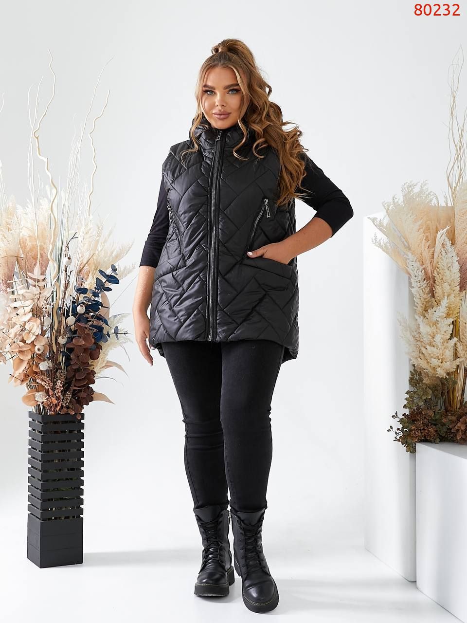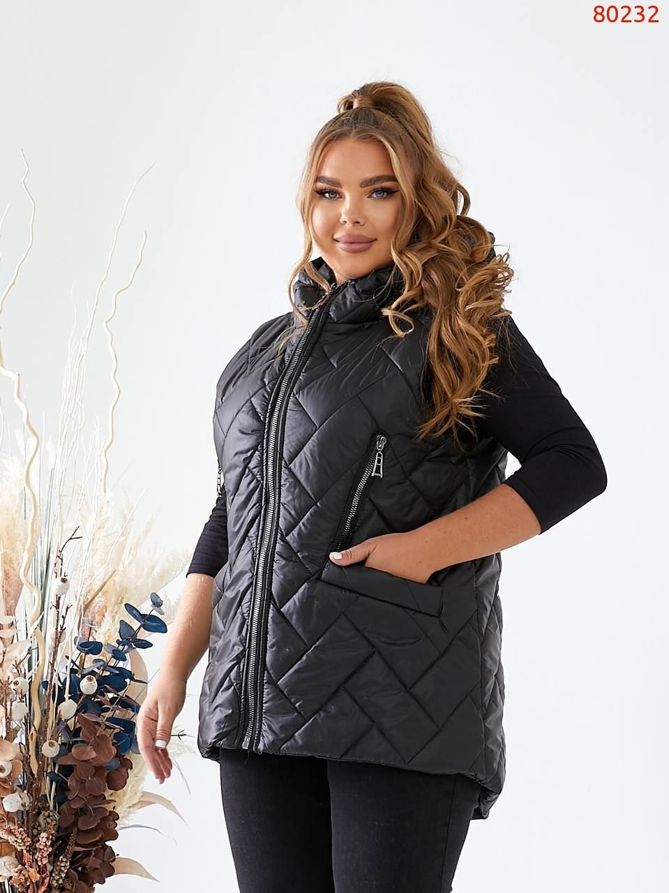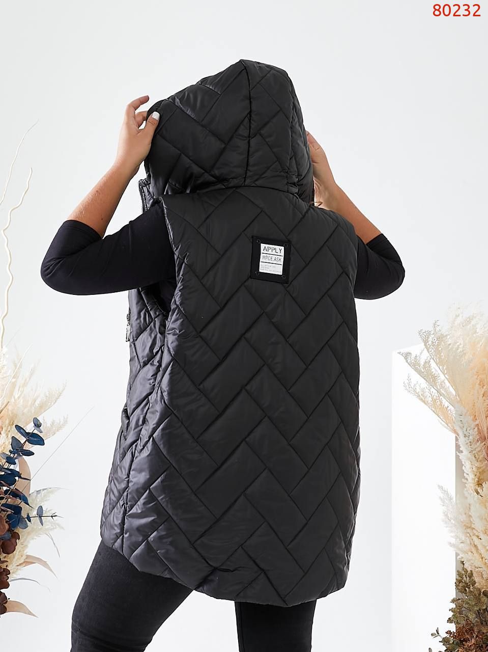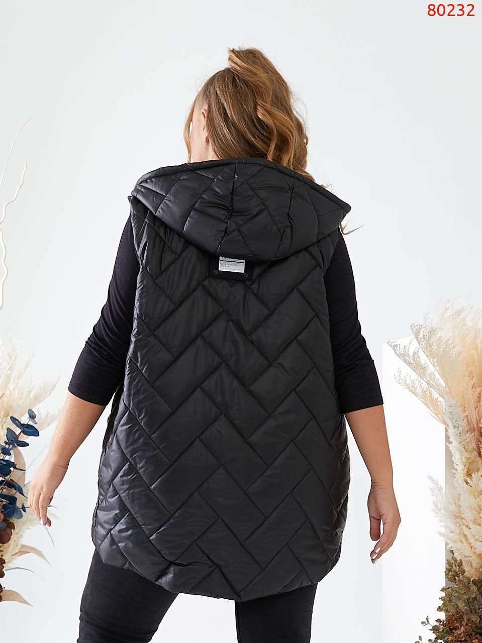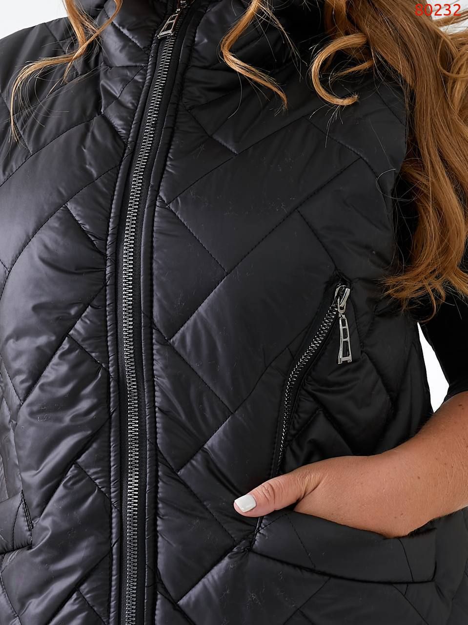 Стильна стегана жилетка з кишенями, зручний глибокий капюшон, якісна фурнітура.