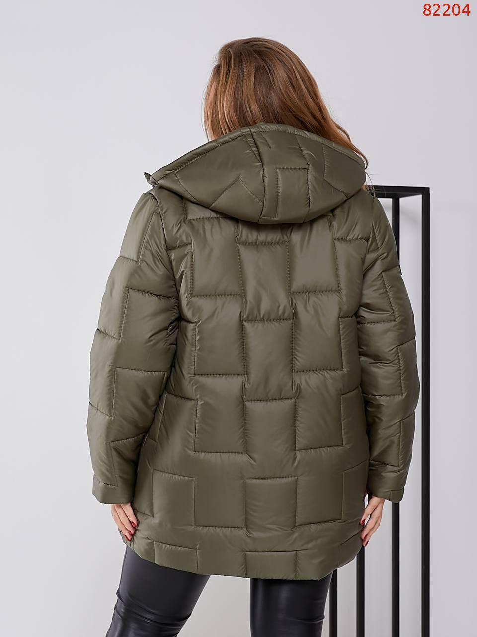 Стильна стьобана куртка прямого крою, зручний, глибокий капюшон, якісна фурнітура, нашивка