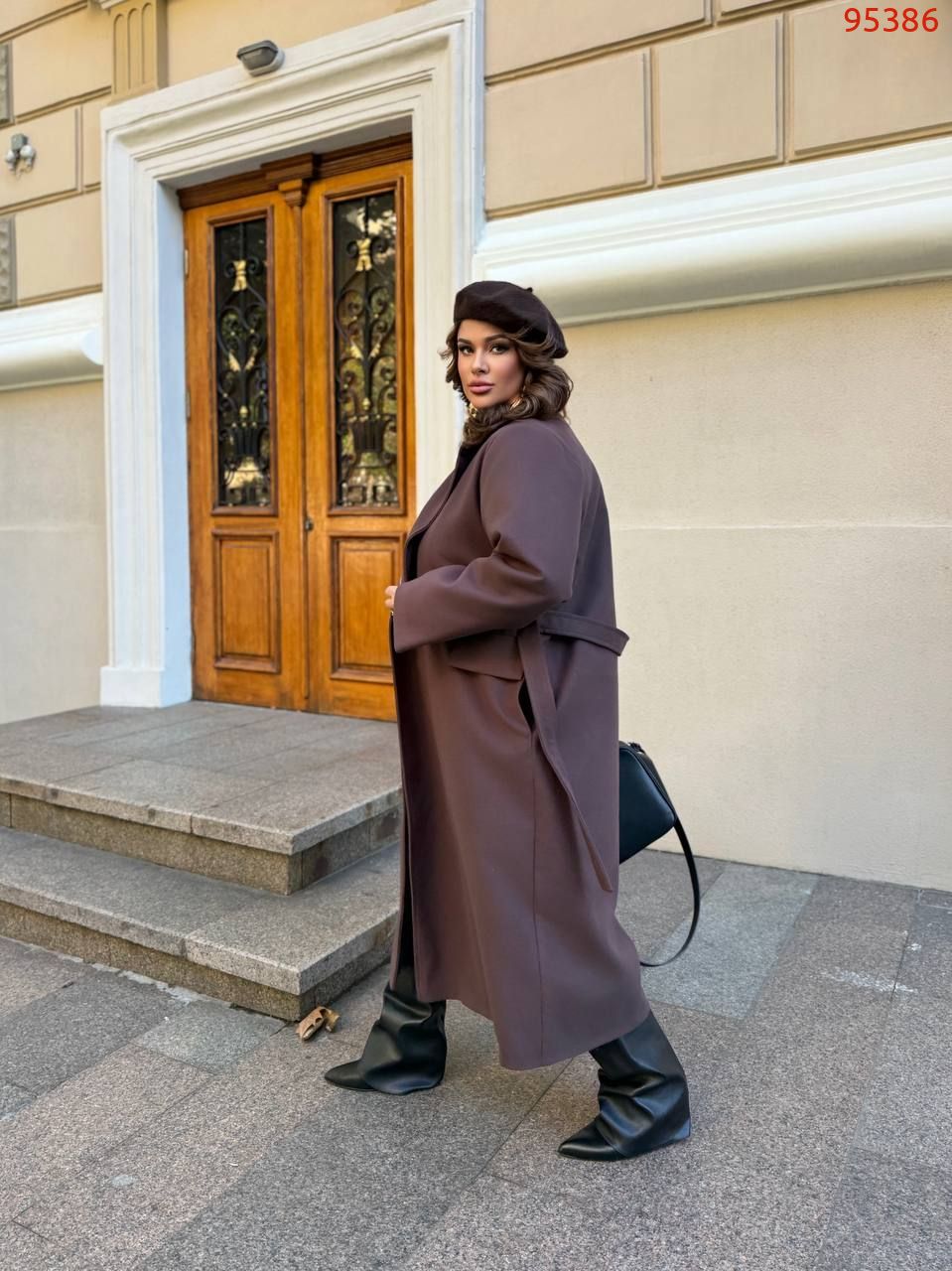 Підкладка стьобана на синтепоні 100. Крій оверсайз, чоловічий двобортний піджак (тренд цього сезону). Підплечники вшити. Застібки – гудзики, додається пояс – можна приталювати, створюючи інший стиль образу. Довжина виробу 124 см, довжина рукава – 63см