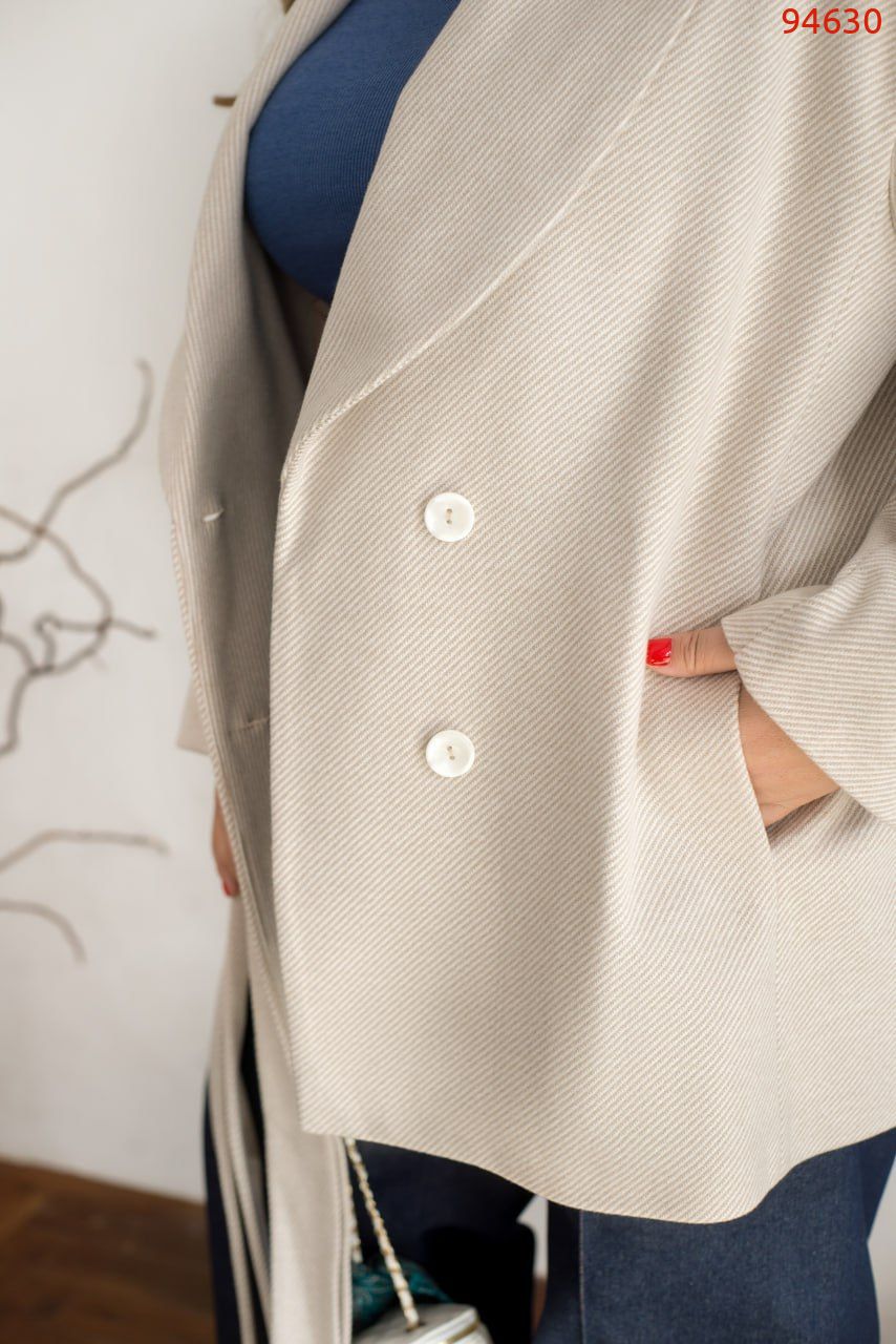 Справжня знахідка для тих, хто цінує елегантність і комфорт. Наше нове укорочене двобортне пальто з кашеміру супер якості. Виготовлене з м’якого, щільного кашеміру, воно відмінно захищає від прохолоди, даруючи відчуття затишку. Врізні кишені додають функціональності, а класичний комір підкреслює стильність моделі. У комплекті йде текстильний пояс, який дозволяє підкреслити талію, створюючи витончений силует. Має підкладку. Це пальто стане вашим універсальним вибором для осінніх і весняних образів, підкреслюючи вашу індивідуальність та бездоганний смак!