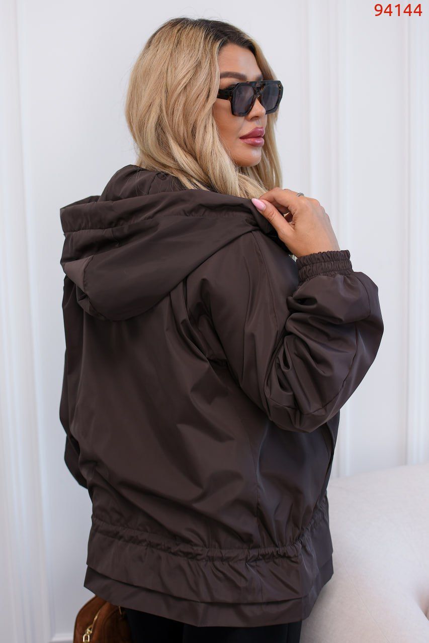 Легка вітровка з якісної плащової тканини на підкладці: повна блискавка, прорізні кишені , рукав реглан. Куліска з фіксатором на поясі дозволяє підлаштувати посадку – від вільної до більш приталеної. Легко поєднується з джинсами , сукнями та кросівками .