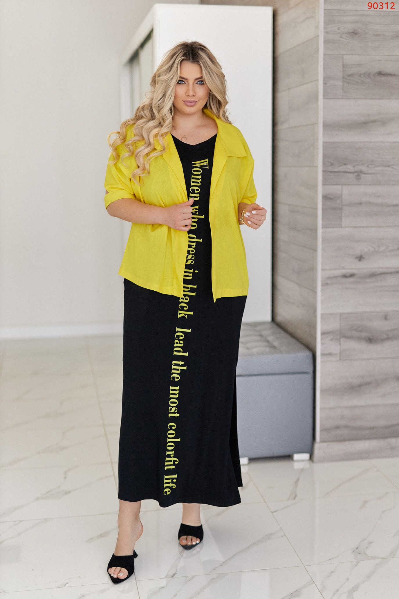 ▪︎ На передній частині сукні – контрастний вертикальний напис з апплікації, який візуально витягує силует.