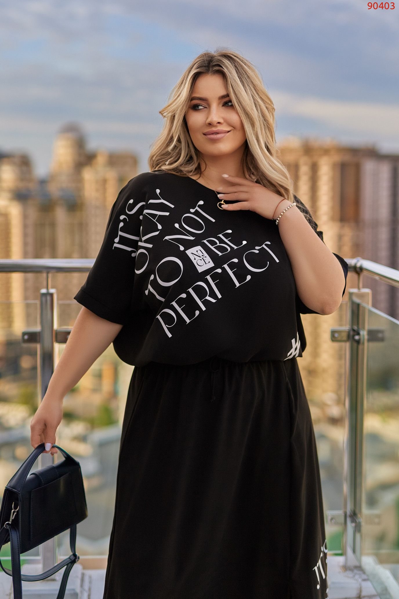 ▪︎ На передній частині — модний напис “It’s okay not to be perfect”, виконаний у вигляді аплікації.