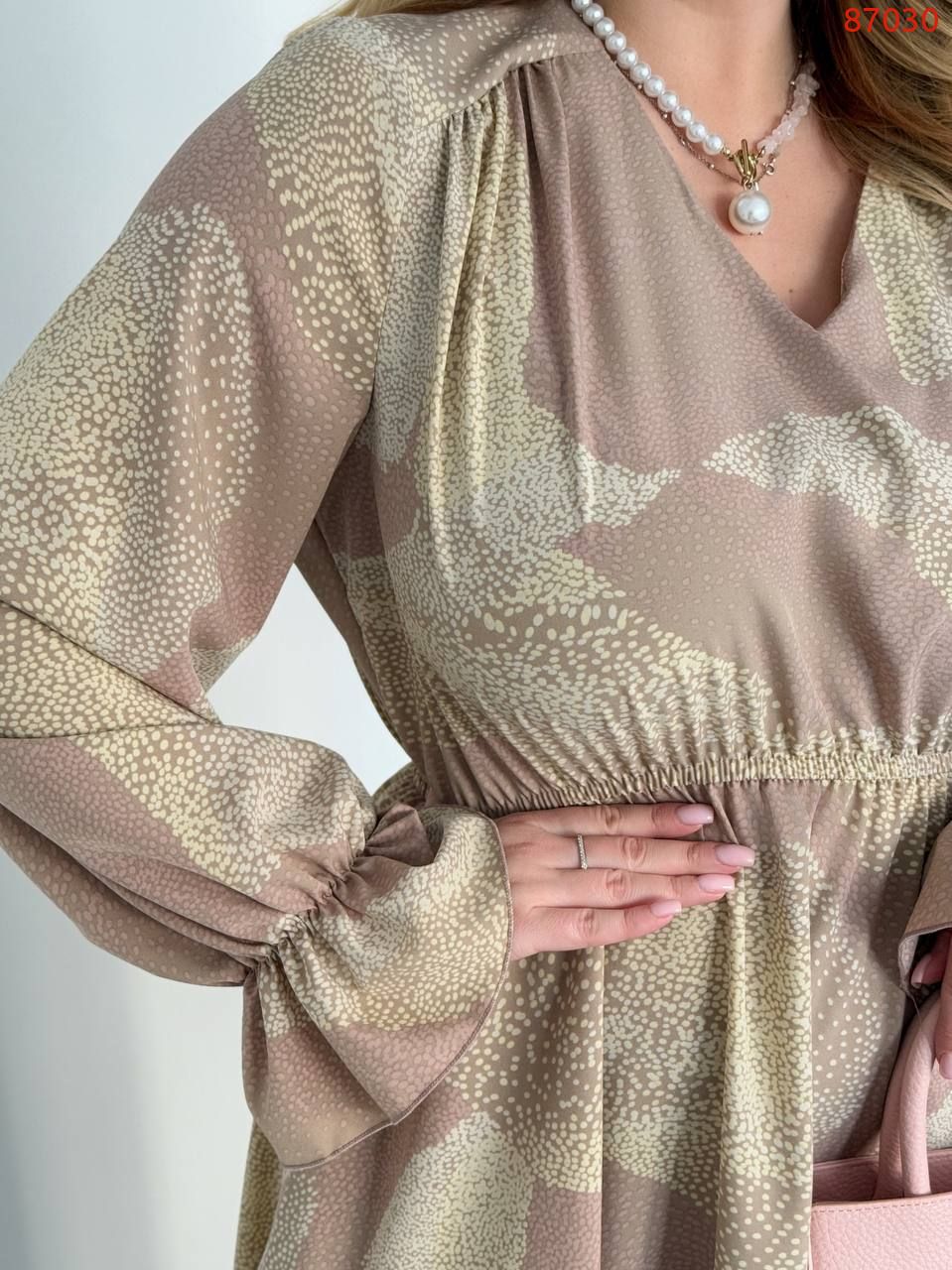 Елегантна та жіночна сукня максі довжини з неймовірним принтом, представлена у трьох чарівних кольорах. Завдяки витонченому крою, легкій тканині та стильним деталям вона стане ідеальним вибором для будь-якого випадку.