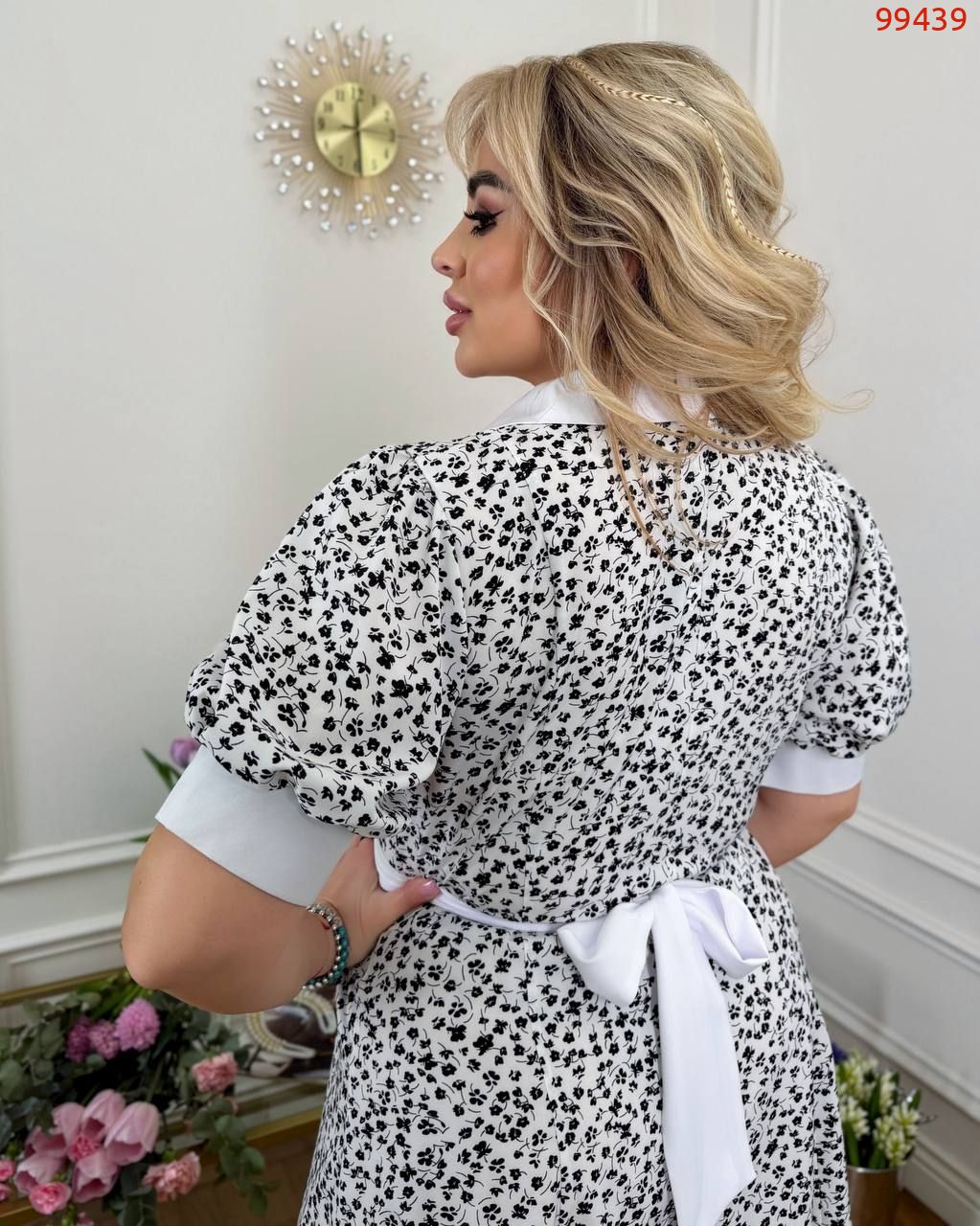 Плаття принтоване на молнії , пояс ,комір та манжети з однотонної тканини . Пояс можна завʼязувати спереду та ззаду