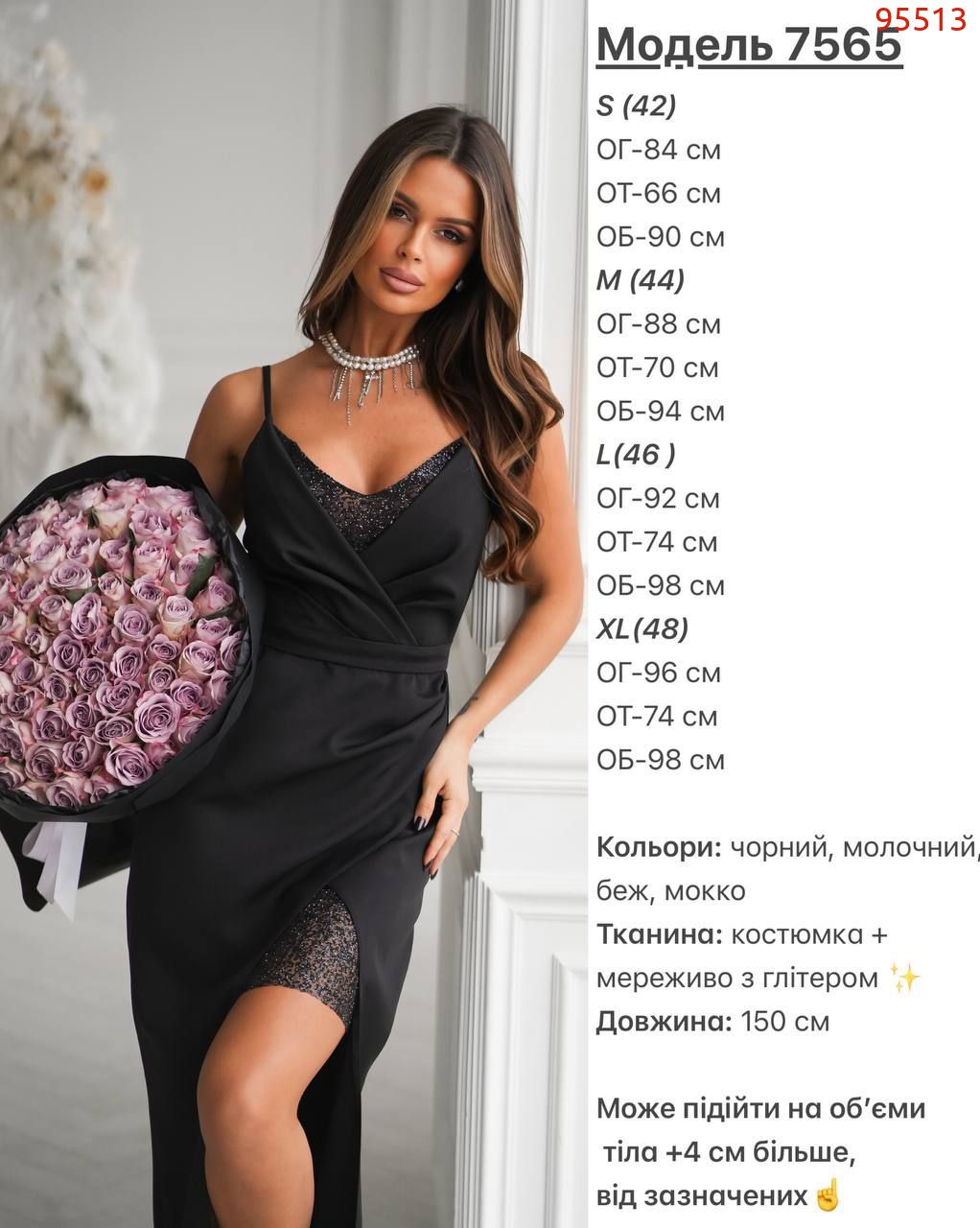 Верх моделі – на запах, м’яко підкреслює декольте, а глітерна мереживна вставка додає образу ефектного сяйва.