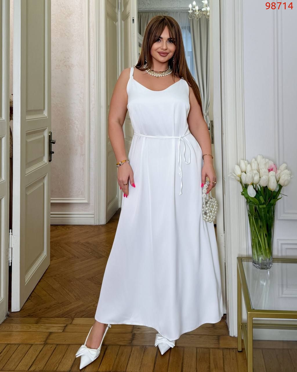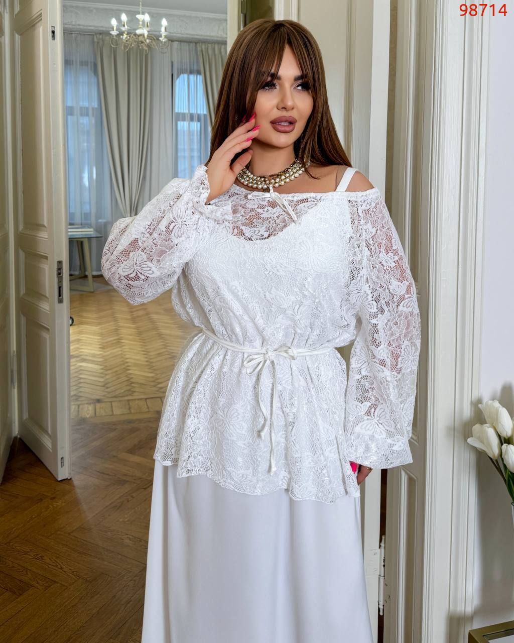 Образ в цілому: модель легко вписується як у святковий, так і в елегантний повсякденний гардероб. У поєднанні з довгою спідницею, що тече, образ виглядає ніжно, статусно і дуже жіночно.
