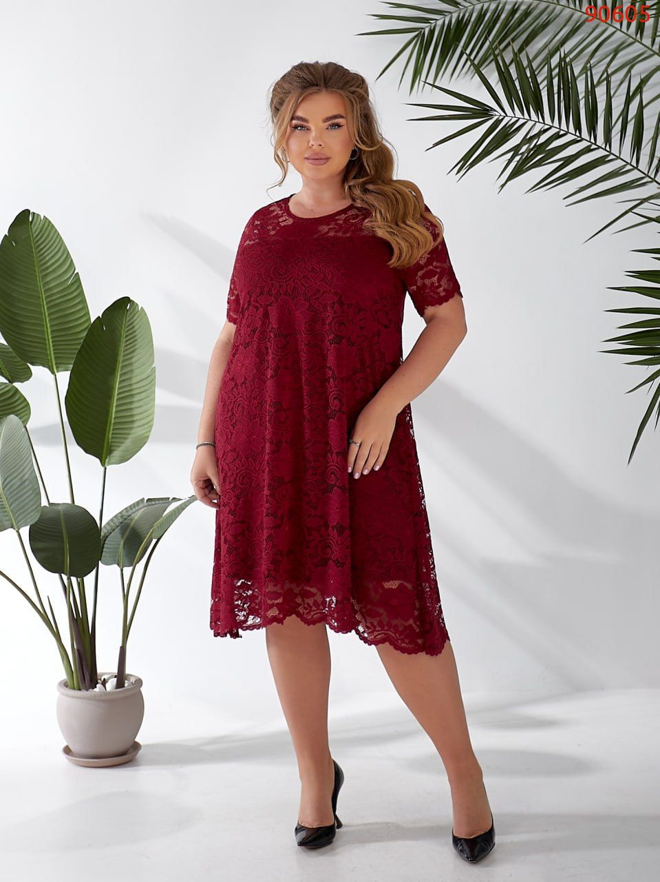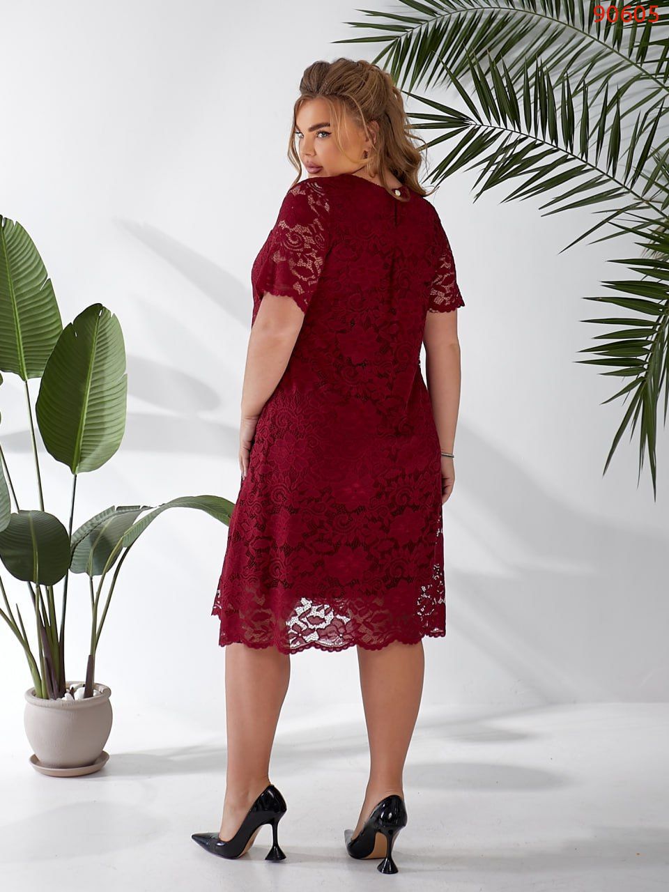 Елегантна сукня вільного силуету з гіпюру. Позаду на гудзику.