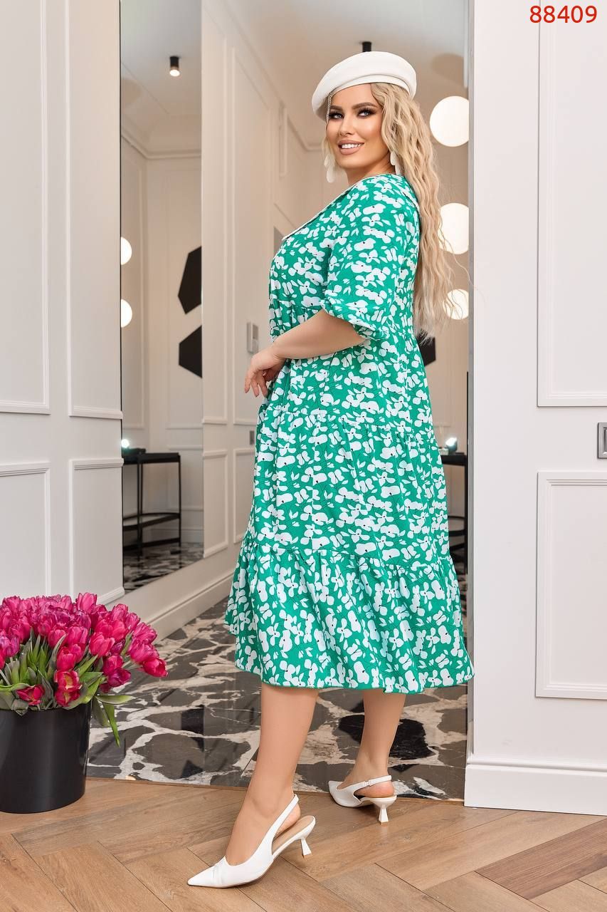 58-60- ог-124, обт -122, обхват стегон-176, довжина рукава від плеча-40, обхват рукава-44, довжина сукні- 118 см.