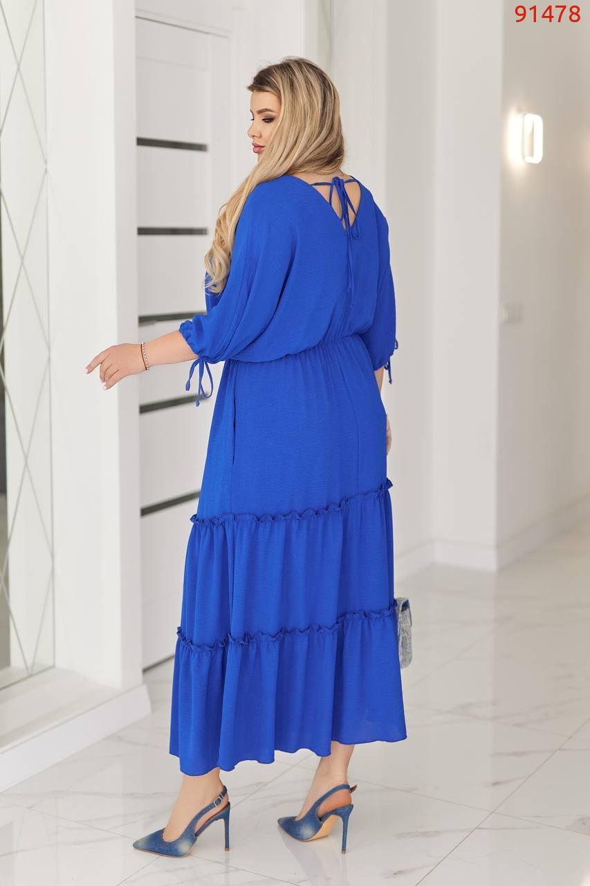 Легка , неймовірна сукня , що летить ! Вільний крій, на грудях і спині з V-подібним вирізом, талія - на гумці з поясом, рукав кажан на зав'язках. Шикарна, широка, ярусна спідниця та приголомшливі літні кольори підкорять ваше серце!