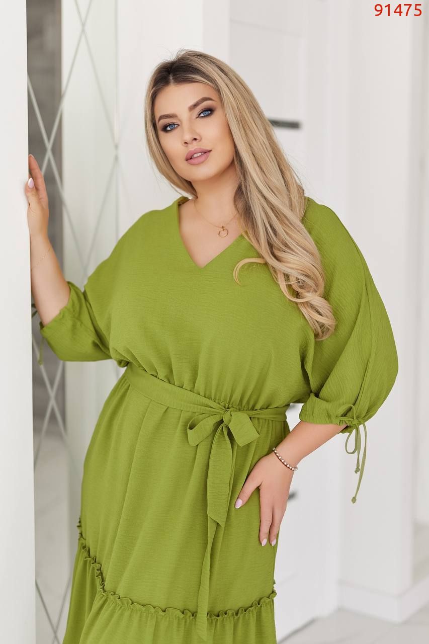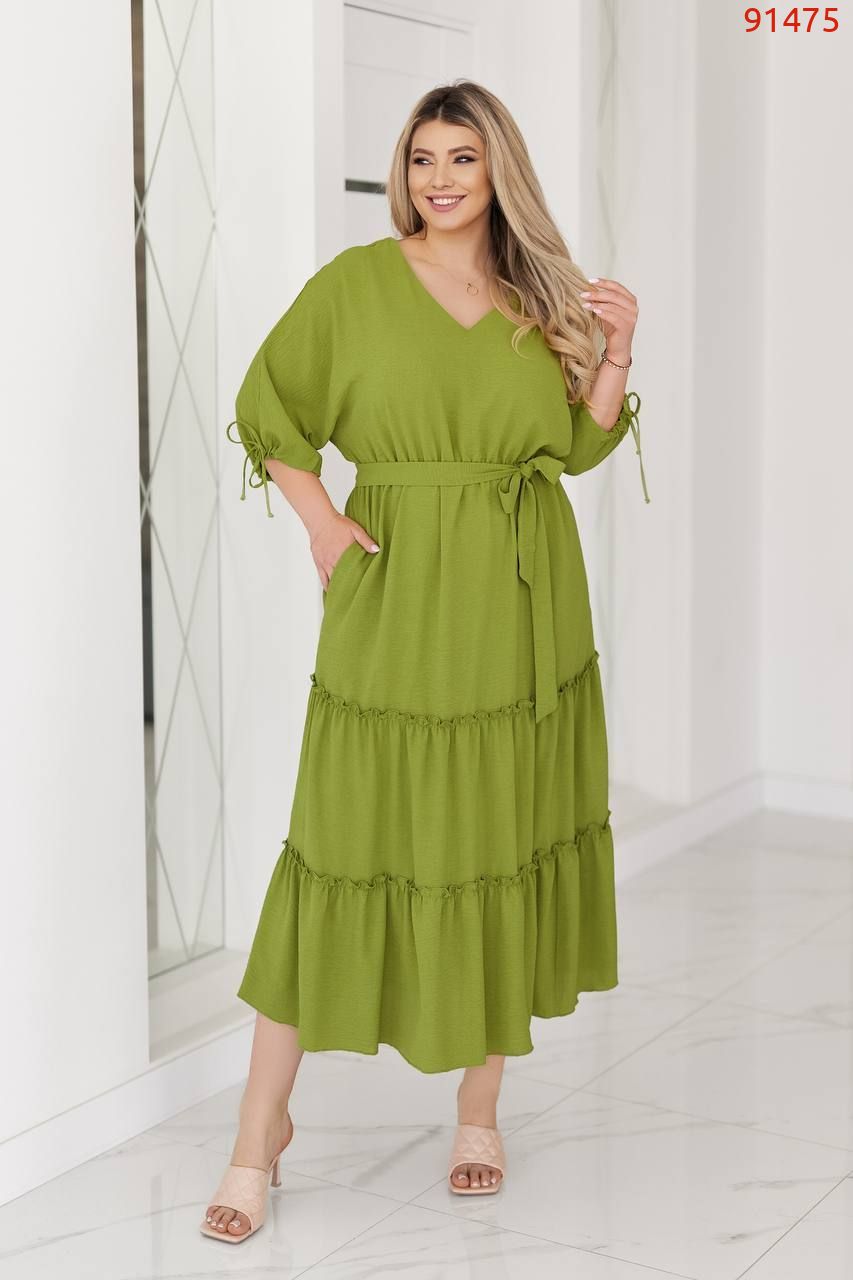 Легка , неймовірна сукня , що летить ! Вільний крій, на грудях і спині з V-подібним вирізом, талія - ​​на гумці з поясом, рукав кажан на зав'язках. Шикарна, широка, ярусна спідниця та приголомшливі літні кольори підкорять ваше серце!