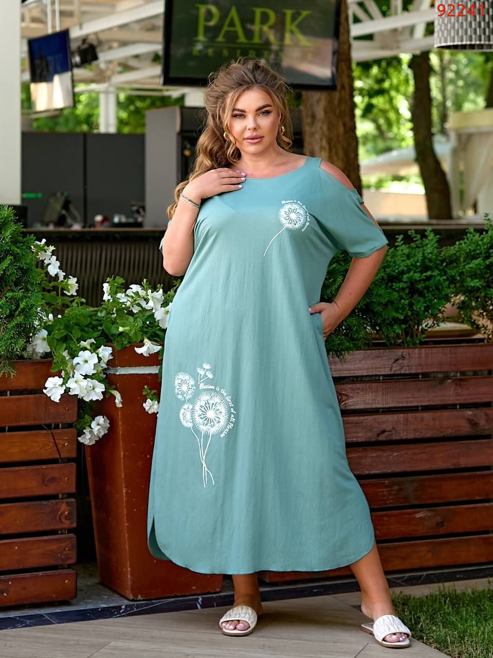 Сукня вільного крою ідеально підійде на спекотні літні дні, з боків кишені, декорована накатом.