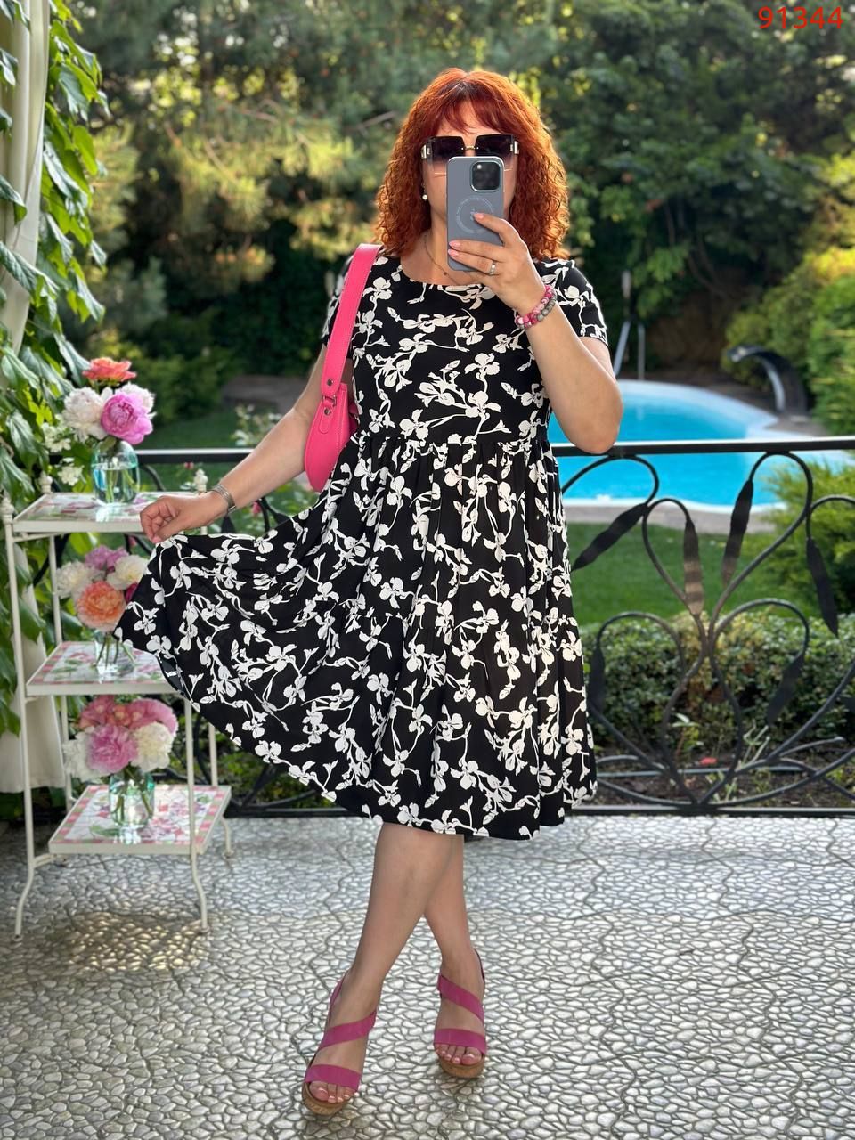 Сукня складається з ліфа та спідниці у два яруси. Виріз горловини круглий, рукав короткий. Кишень та застібок немає. Ця сукня - ідеальний образ на літні спекотні дні.