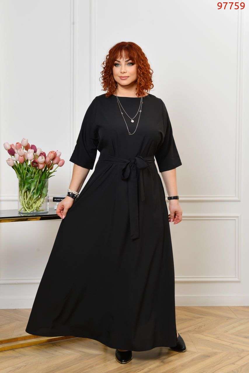 Сукня має відрізну лінію талії, верх силуету «летюча миша», рукав довжиною по лікоть. Виріз горловини круглий. Спідниця у формі трапеції. В бічних швах оброблені кишені. Пояс із основної тканини в комплекті.