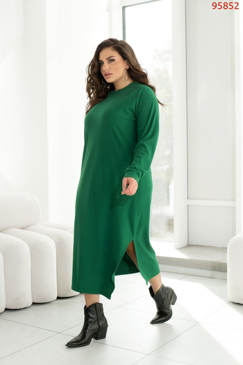 Стильна сукня, виконана з м'якої ангорової тканини, відрізняється універсальністю, а також вдало вписуються в будь-який стиль. Модель лаконічного прямого силуету доповнена довгими рукавами "реглан" з манжетами, а також фігурним вирізом збоку внизу і злегка асиметричним низом, подовженим спереду.