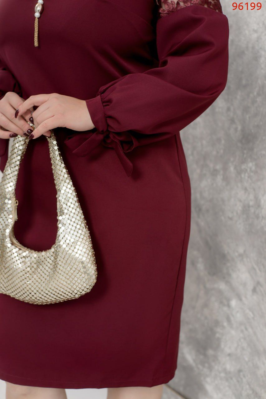 Витончена жіночна сукня стане універсальним рішенням як для зустрічі з друзями, так і для вечірки, роблячи ваш образ стильним, модним і вишуканим. Родзинкою цієї моделі є вставки з ніжного мережива на плечах і довгі рукава з манжетами на зав'язках.